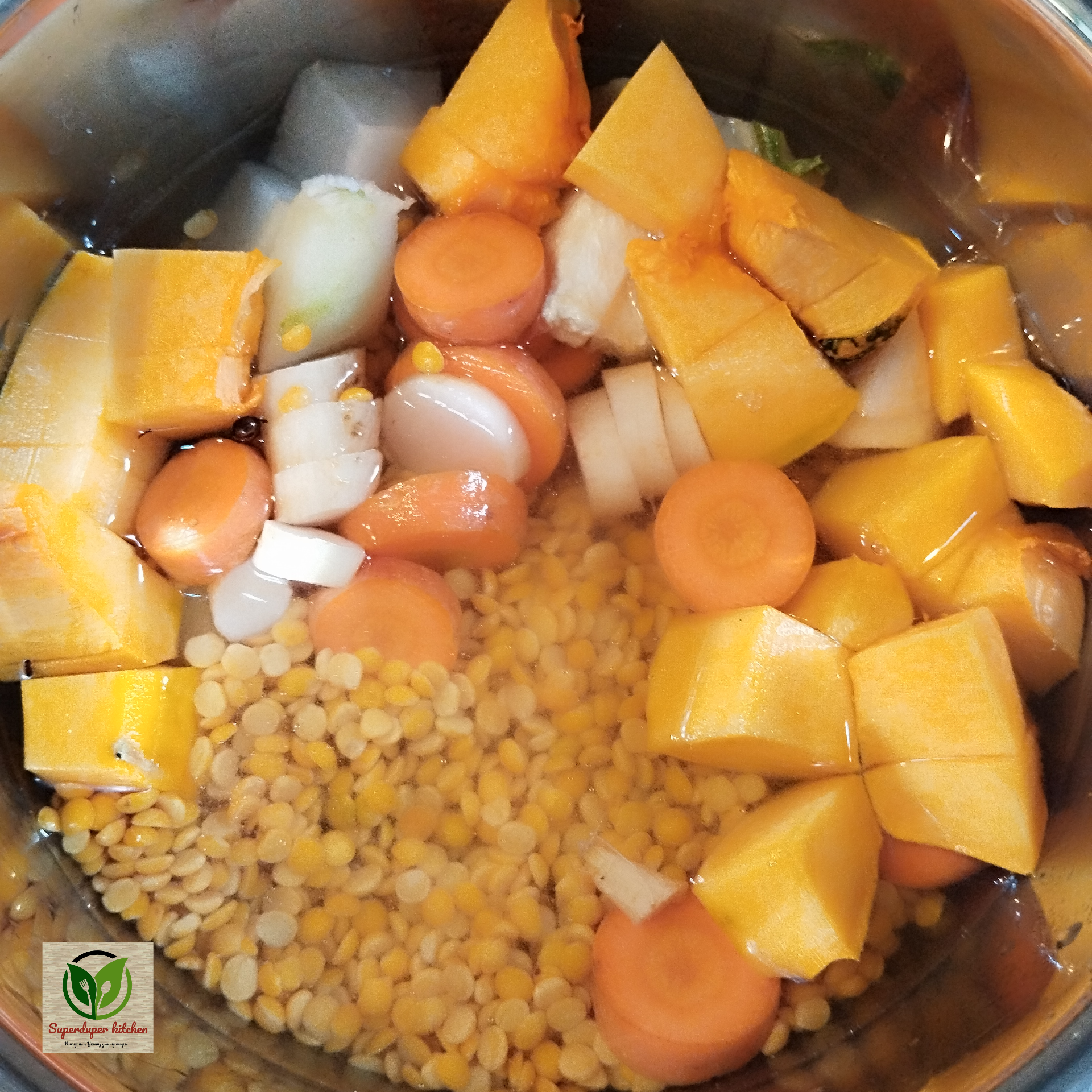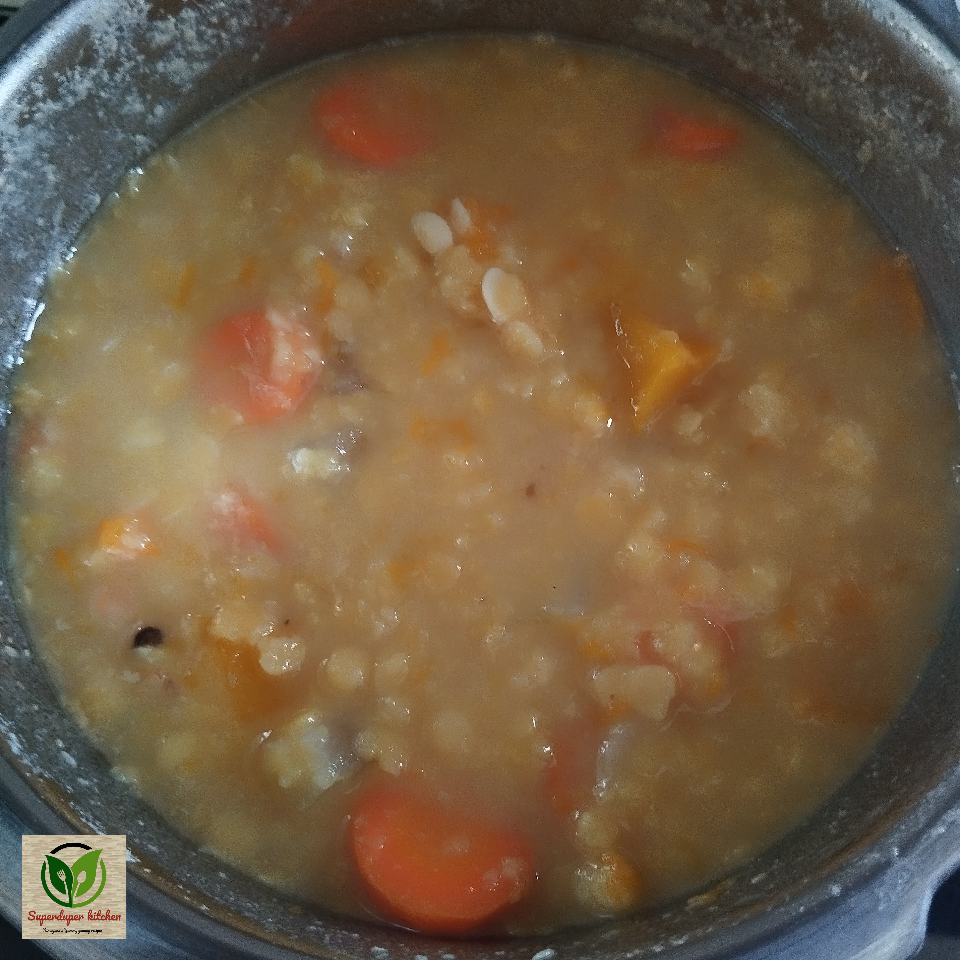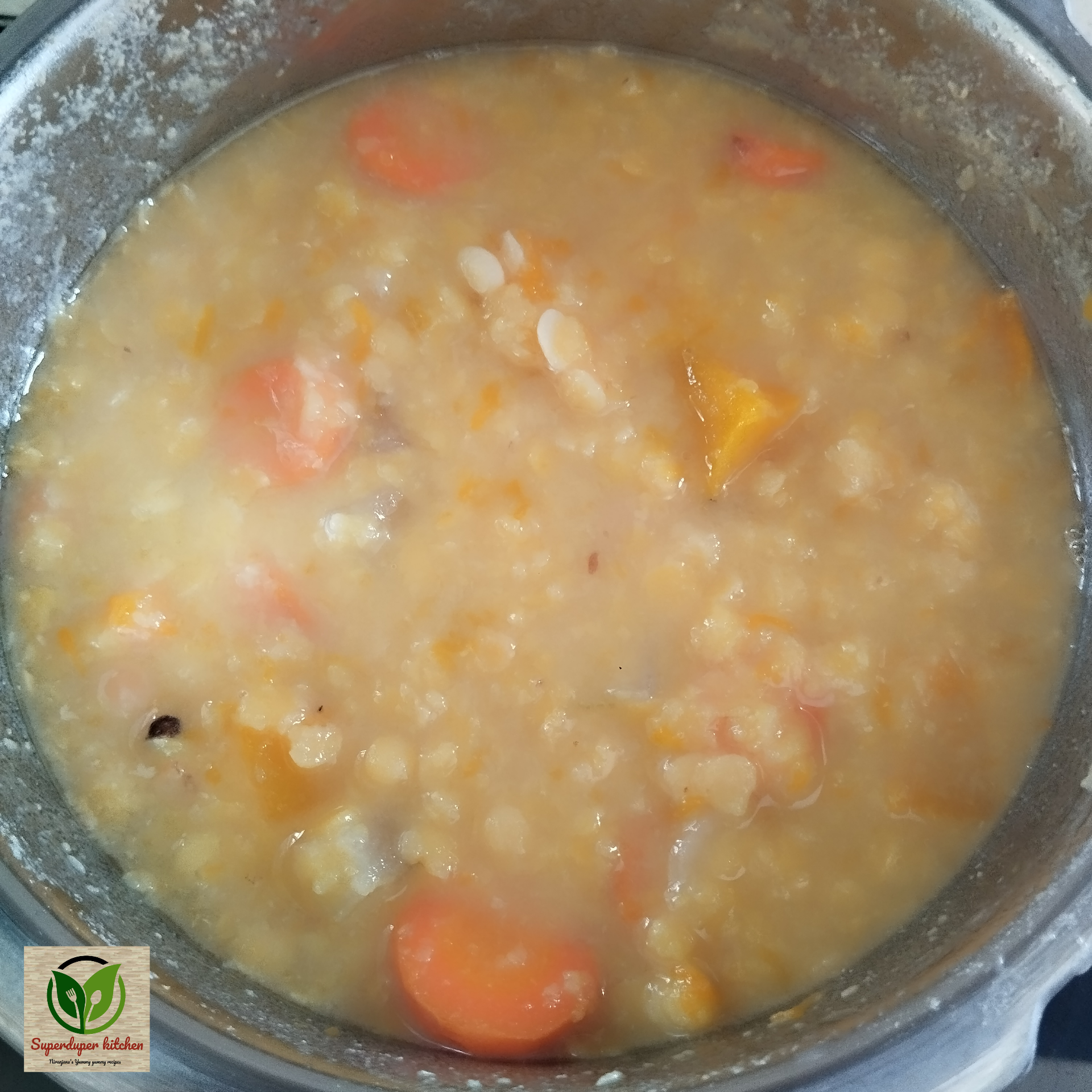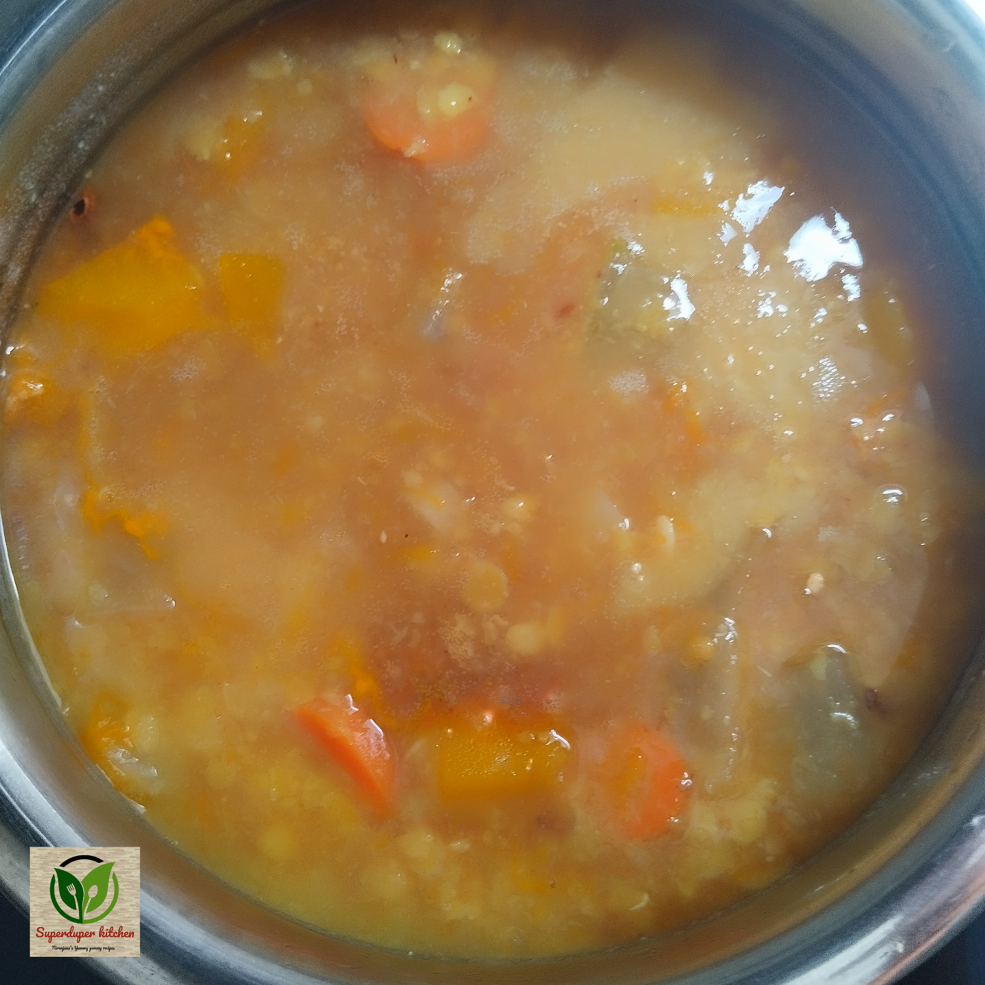 - The dal and vegetable mixture for the Sambar is ready.