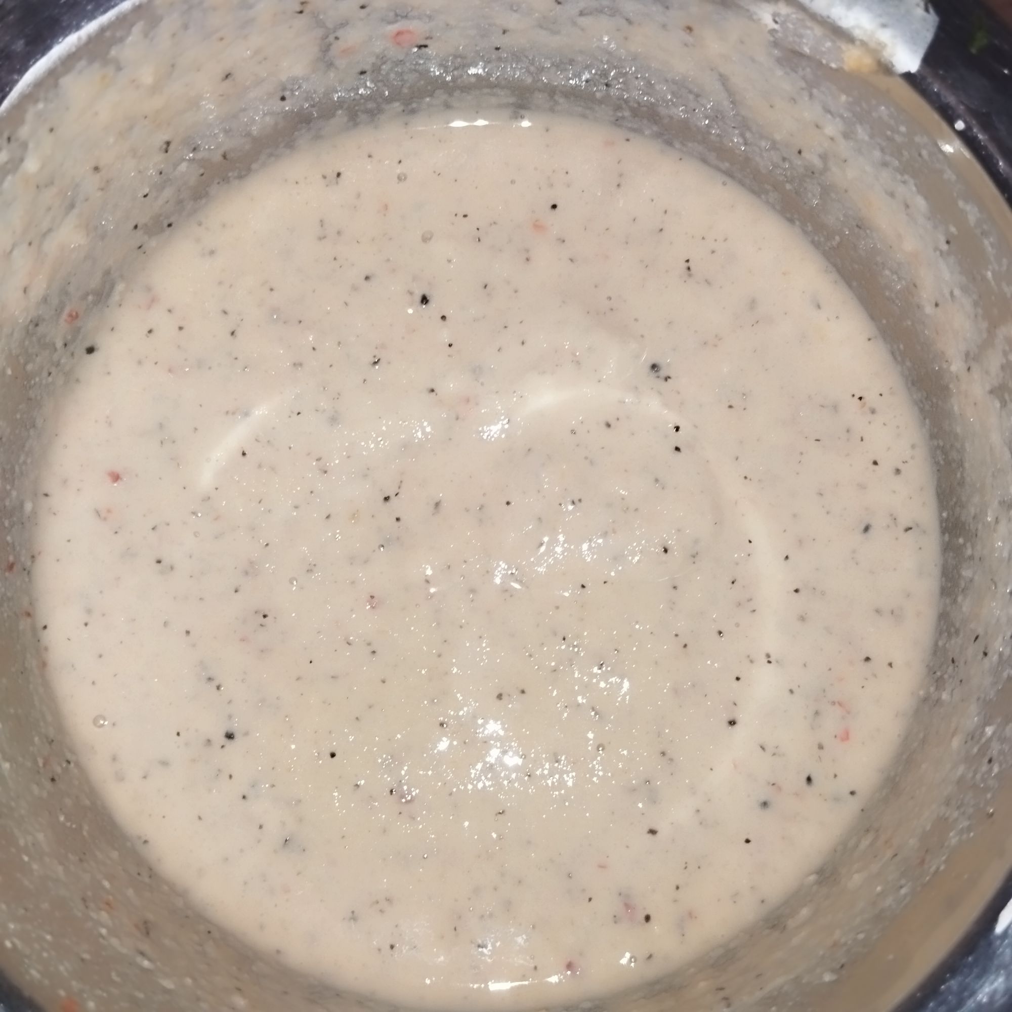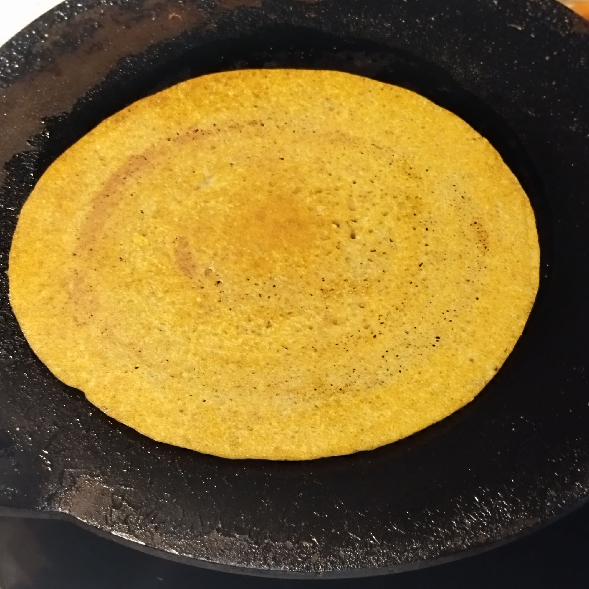 - Spread the batter evenly in a round shape.