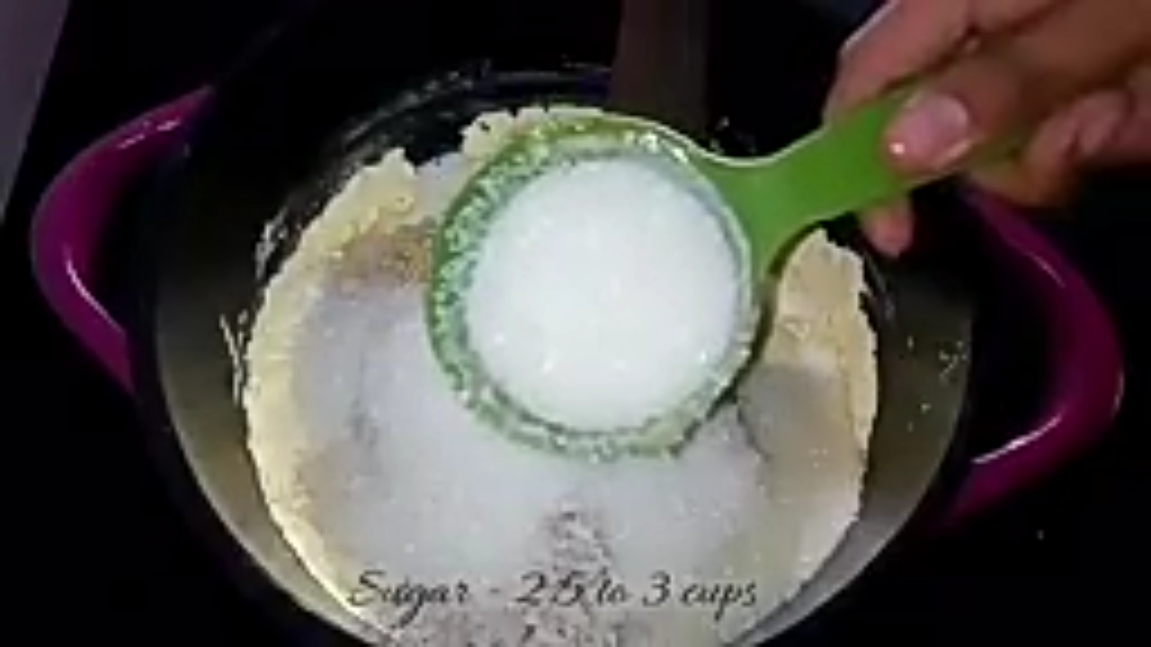 - Add ghee, grated coconut,milk,sugar to it and mix it thorughly.