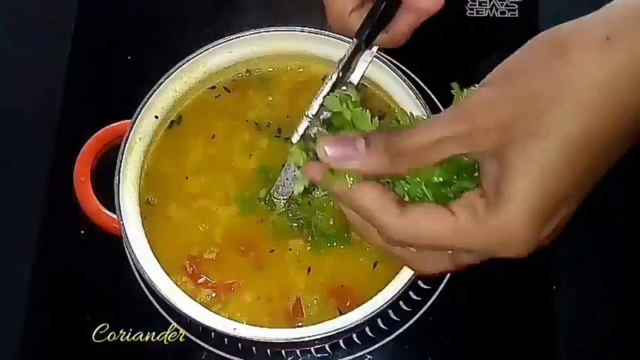 - Finally add the chopped cilantro and curry leaves.