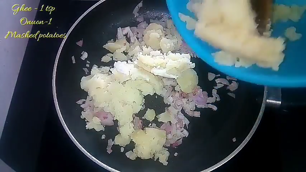 - Add the mashed potatoes into the pan once the onion turns transparent.
