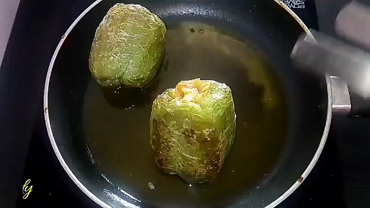 - Heat oil in a pan and shallow fry the stuffed capsicum.