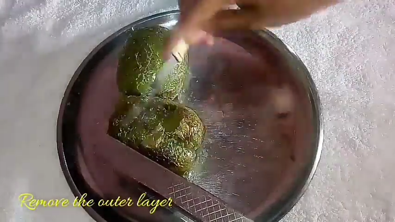 - Then with the knife, remove the outer skin so that you could get back the green colour.
