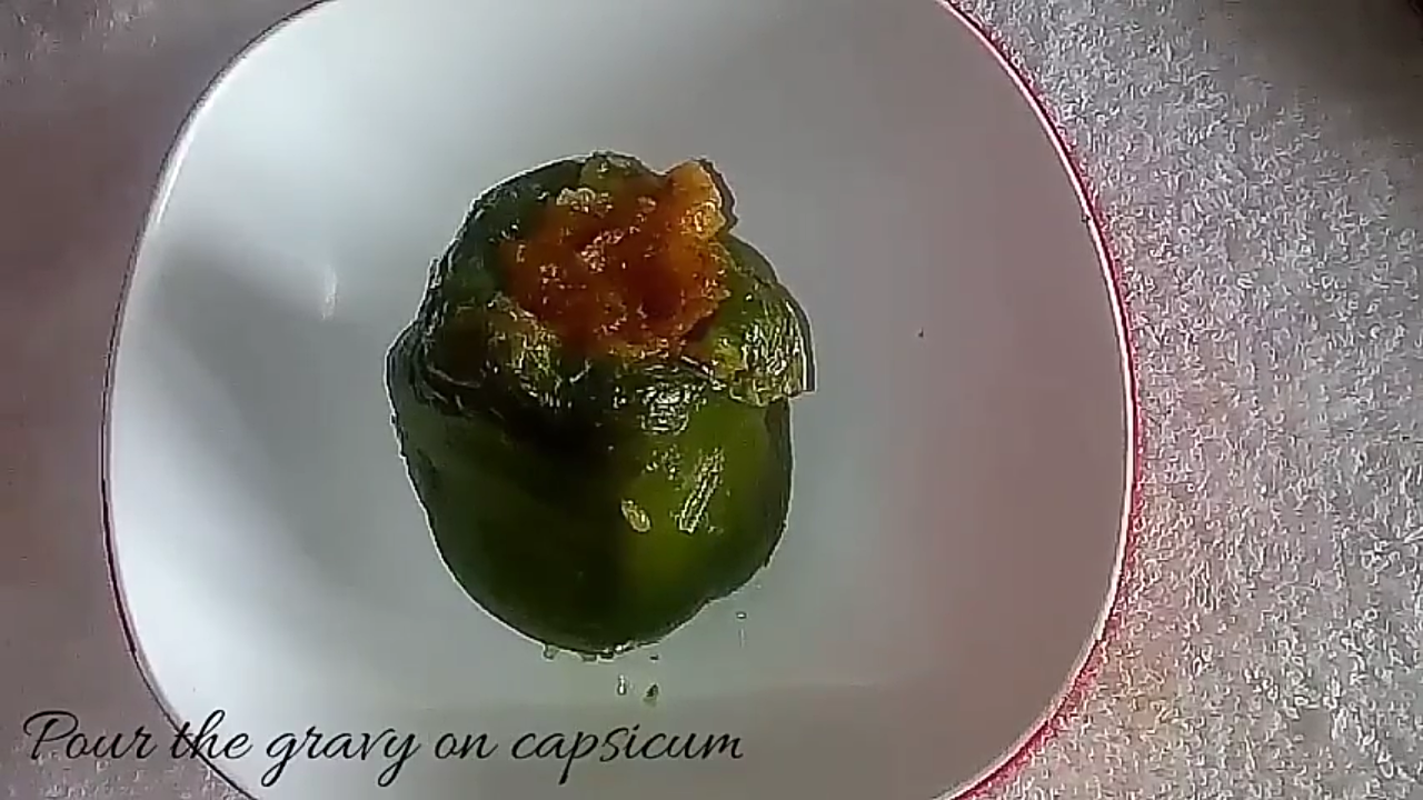 - Pour the gravy over the capsicum and serve hot with roti, phulka, chappathi, khulcha and naan.