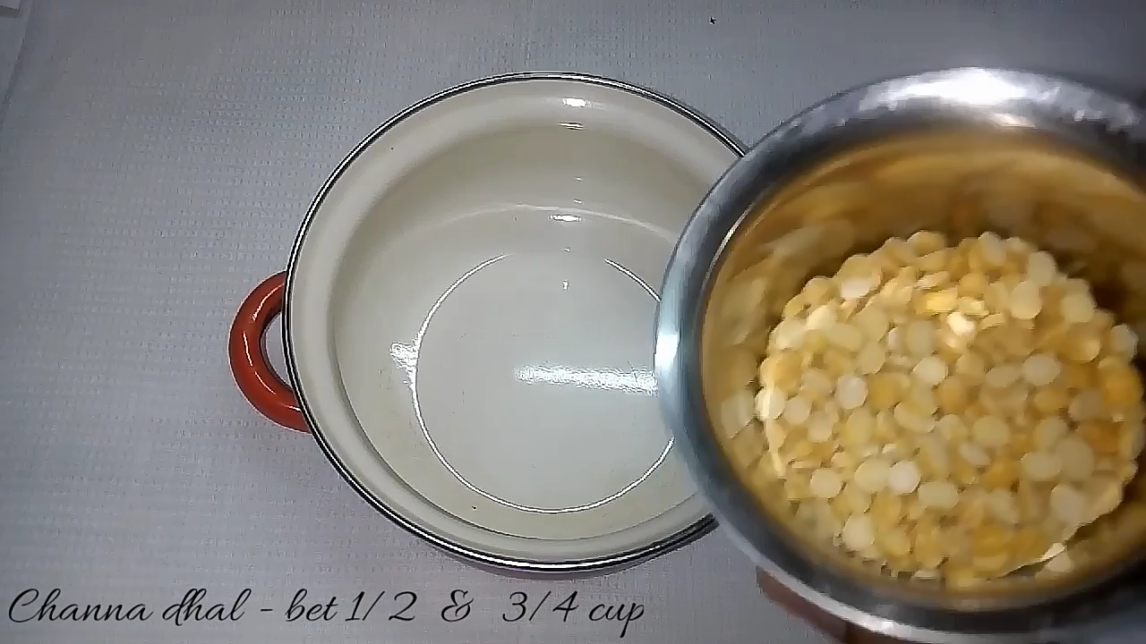Channa dhal/Vadai paruppui- between 1/2 and 3/4 cup