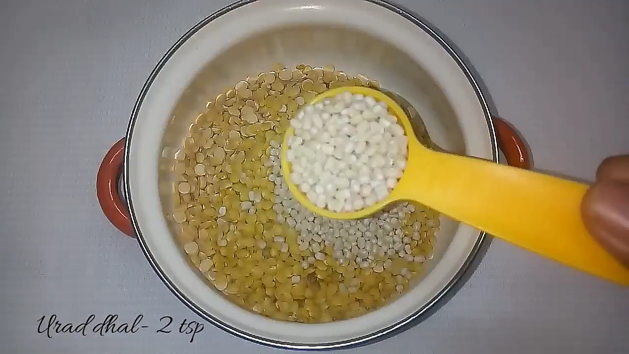 - Take three dhals and add it in a vessel. Soak all the three dhals in water for 4 hours or overnight.