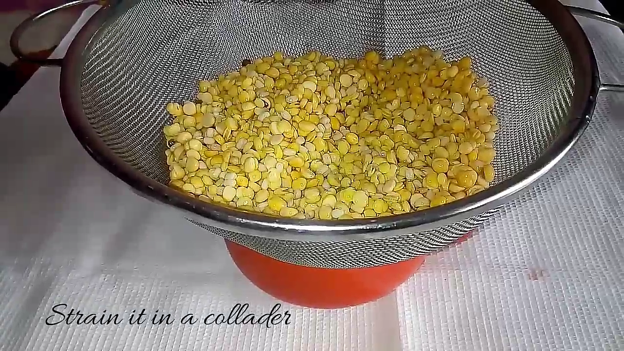 - Next day drain the water completely by placing it in a collader. Make sure you place it well before you make vadai.