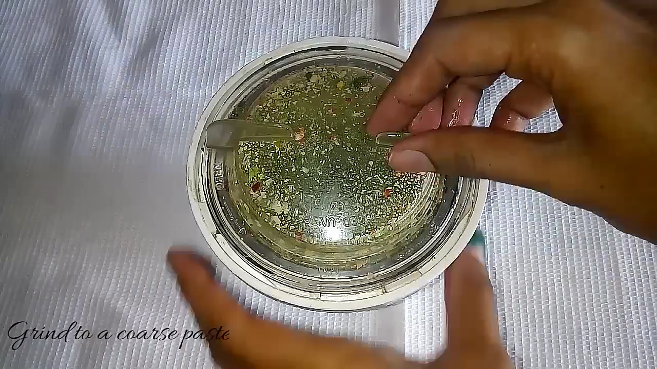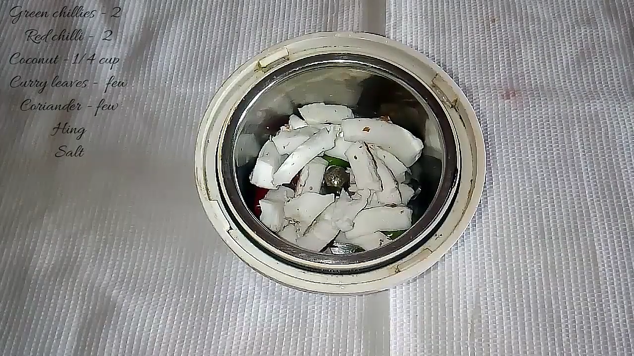 - Now grind the cilantro, curry leaves, red chillies, green chillies, coconut, salt.