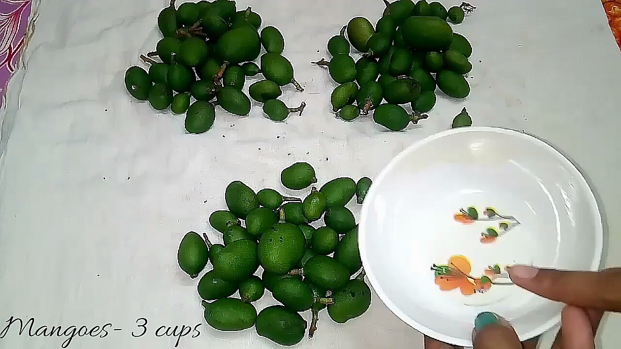 - Measure them to make the recipe easy. So when I measured, it had three cups of tender mangoes.
