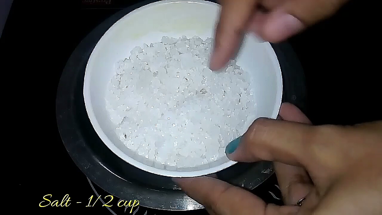 - Dissolve the salt with little quantity of water. Once the salt is dissolved, turn off the stove.
