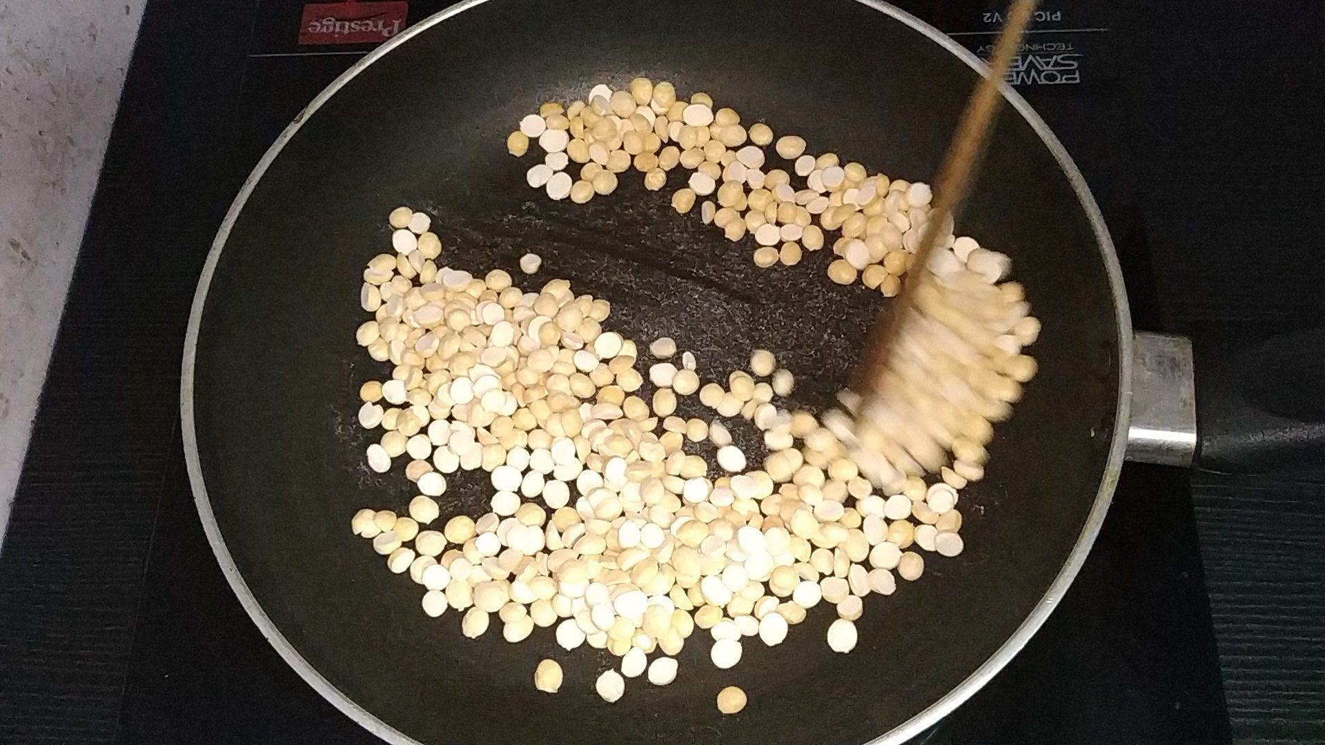 - First take the measured quantity of roasted gram dhal and roast it for a minute until you heat it. Remove it from the pan and allow it to cool.