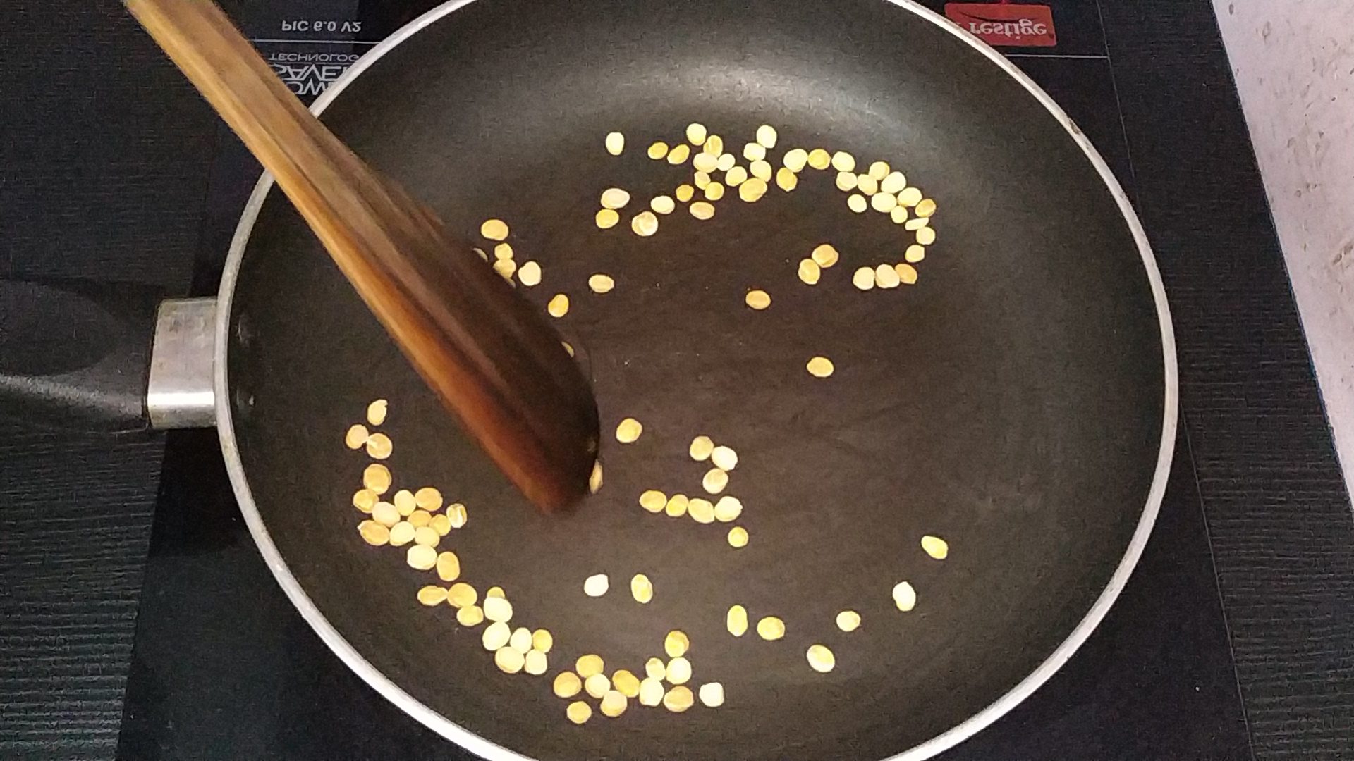 - Add toor dhal and roast it until it turns golden brown in colour.