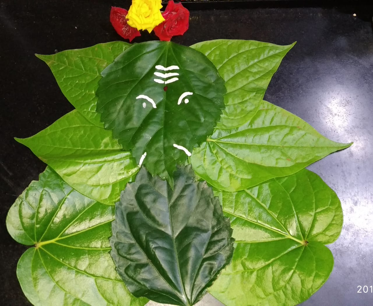 I am also attaching kolam and pillayar made with leaves by my Amma.