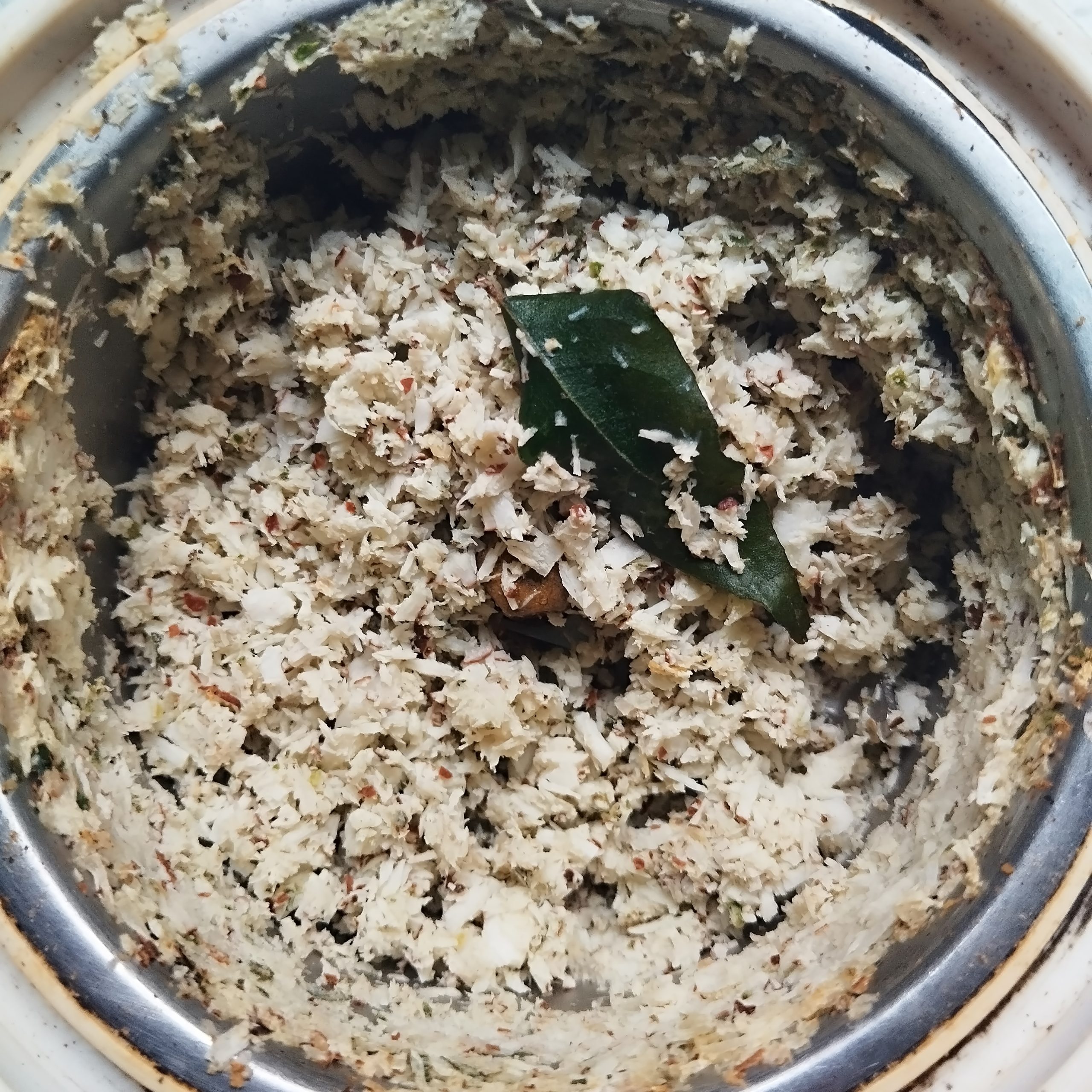 - In a jar add coconut, curry leaves, chilli, coriander and grind them.