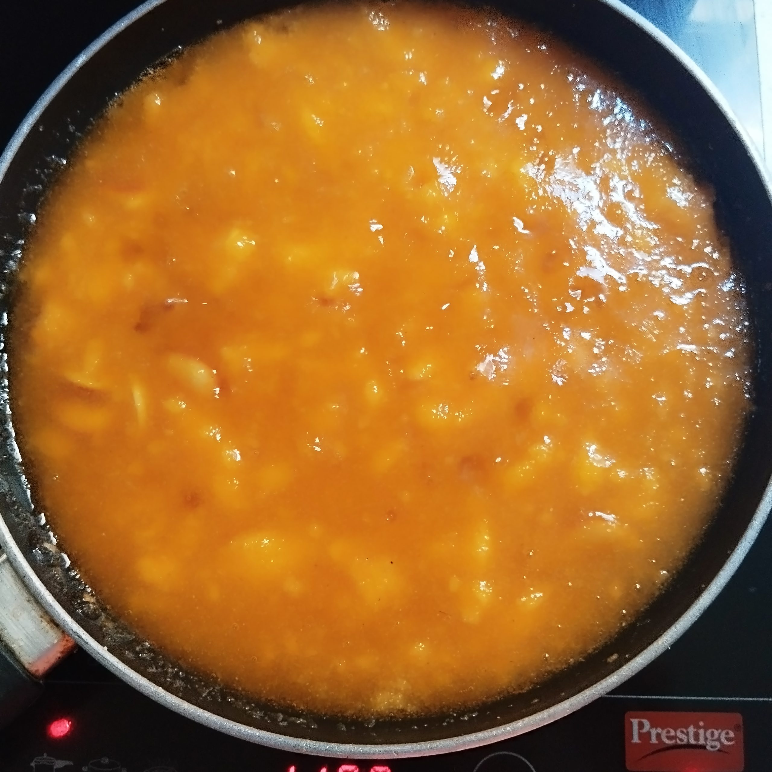 - Add water and allow it to cook. Donot add sugar at this stage.