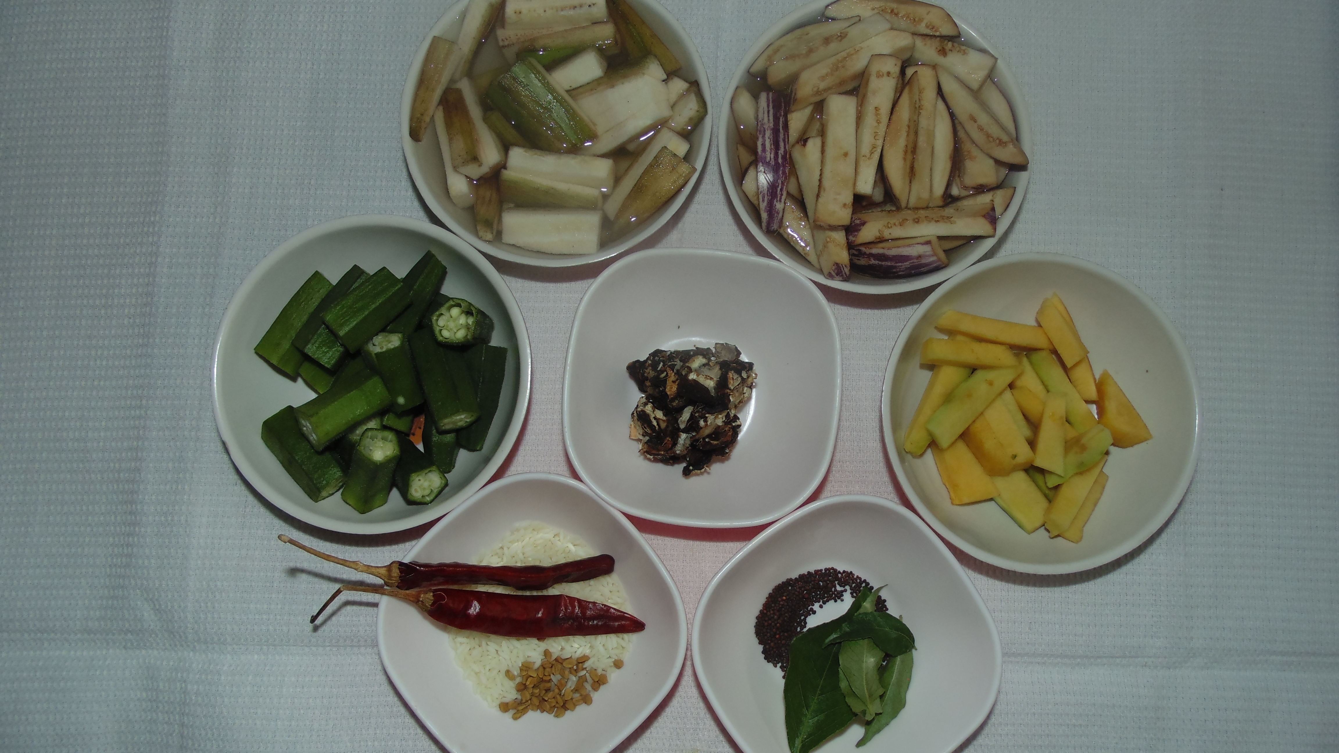 - Vegetables: Common choices are pumpkin, yam, or brinjal, but other firm vegetables can also be used.