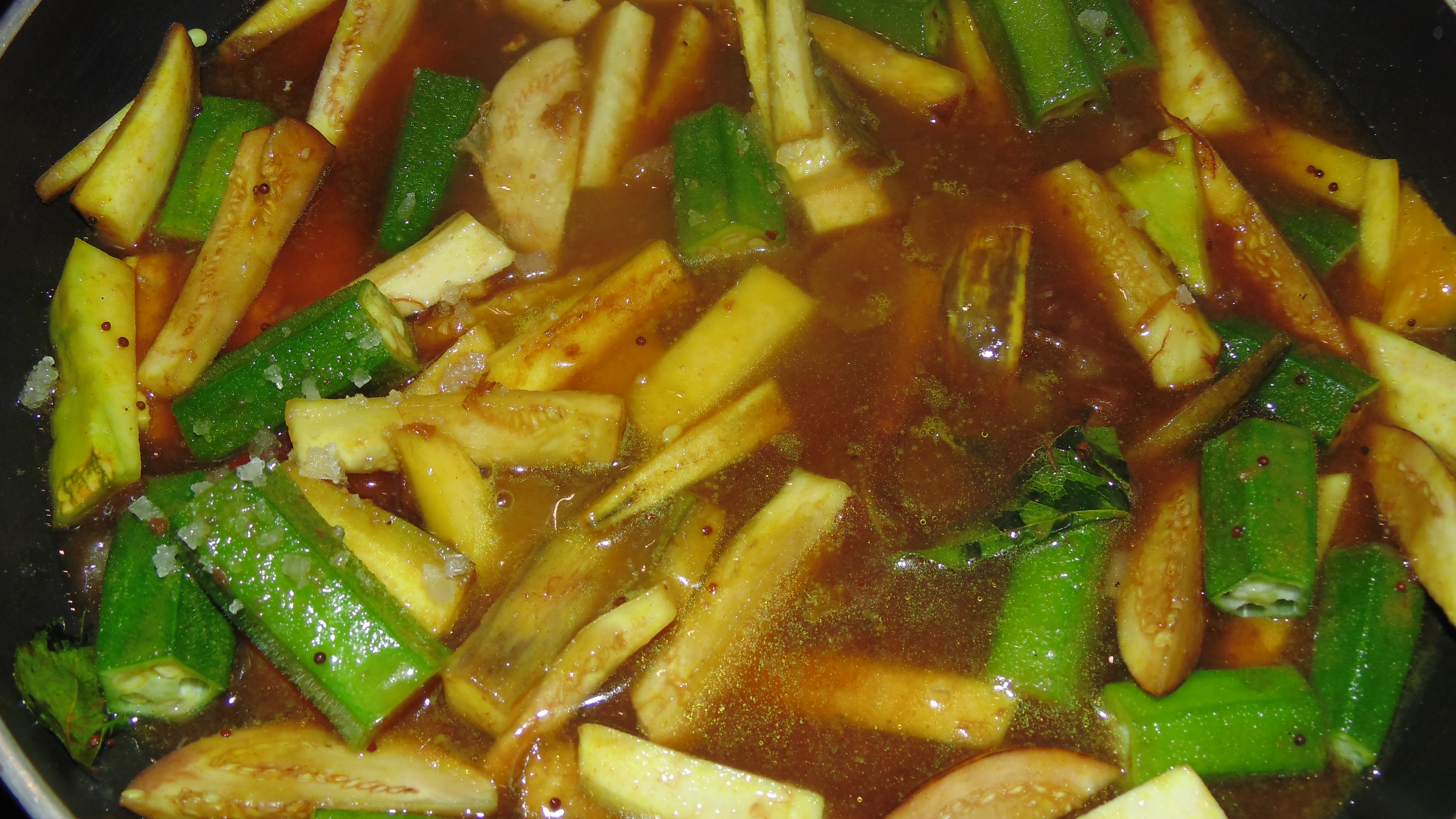 - By the time the vegetables are cooked, the vegetables would have absorbed the tamarind extract.