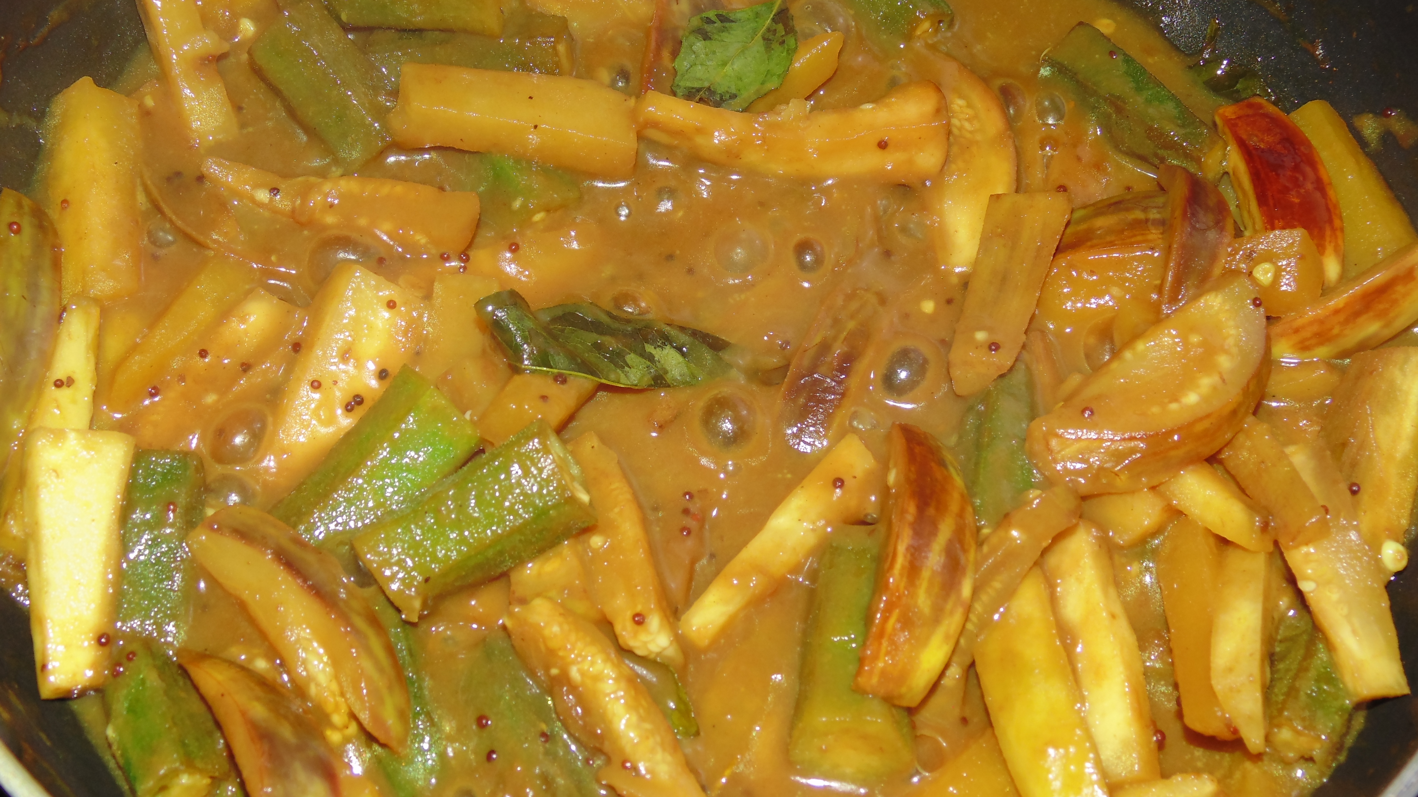 - The stir fried vegetables will stay separate and tastes yum with Molagootal saadham.