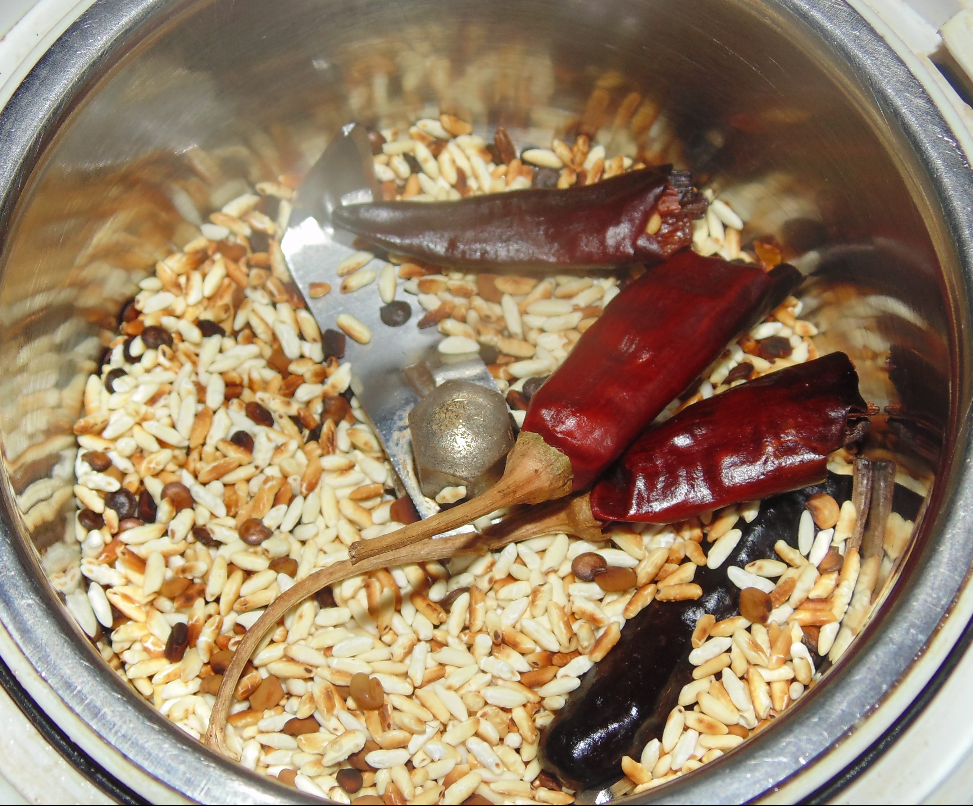 - Spice Blend: A roasted mix of rice, dried red chilies, and fenugreek, ground into a coarse powder for texture and taste.