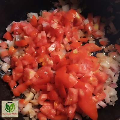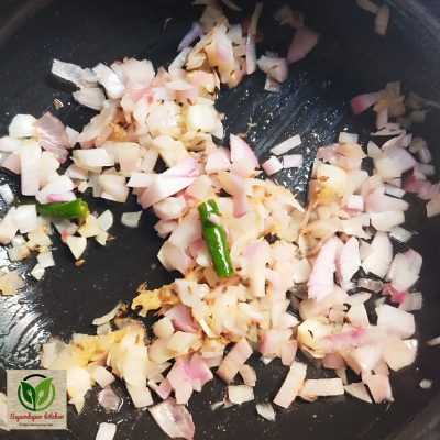 - At this stage add finely chopped onions. Sauté until it turn transparent. Do not caramalise the onions.