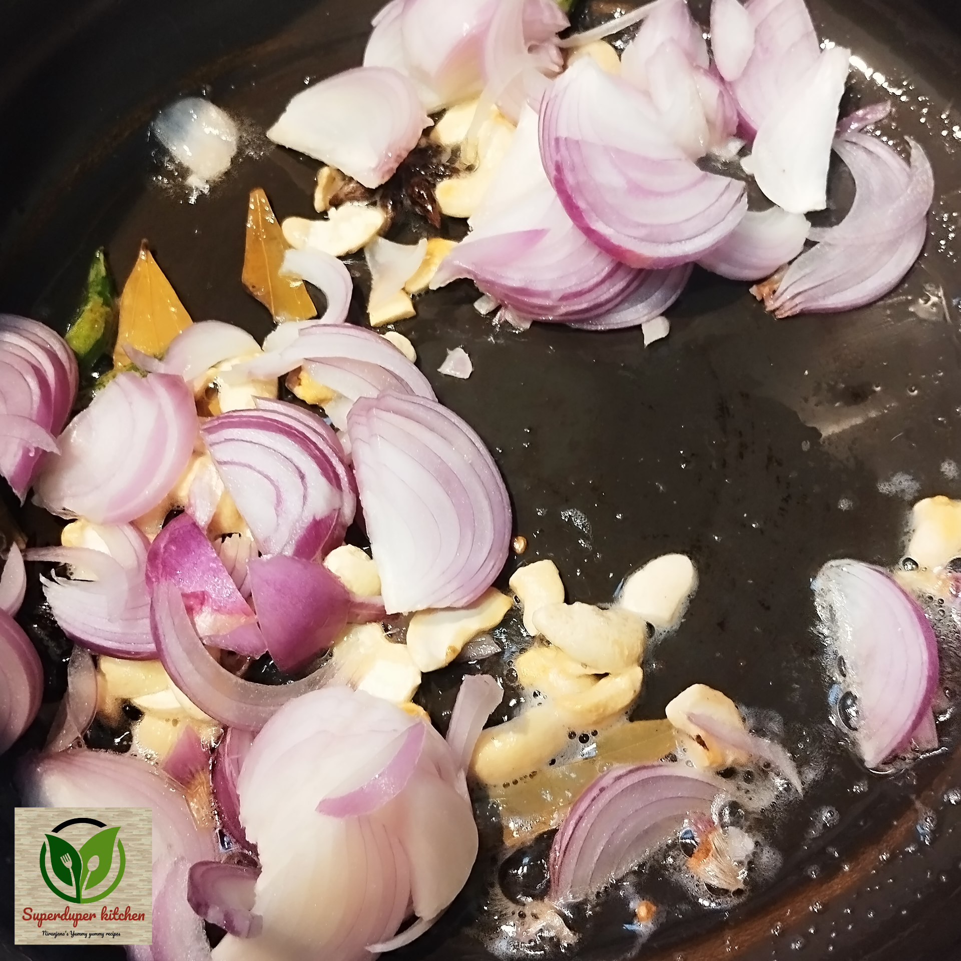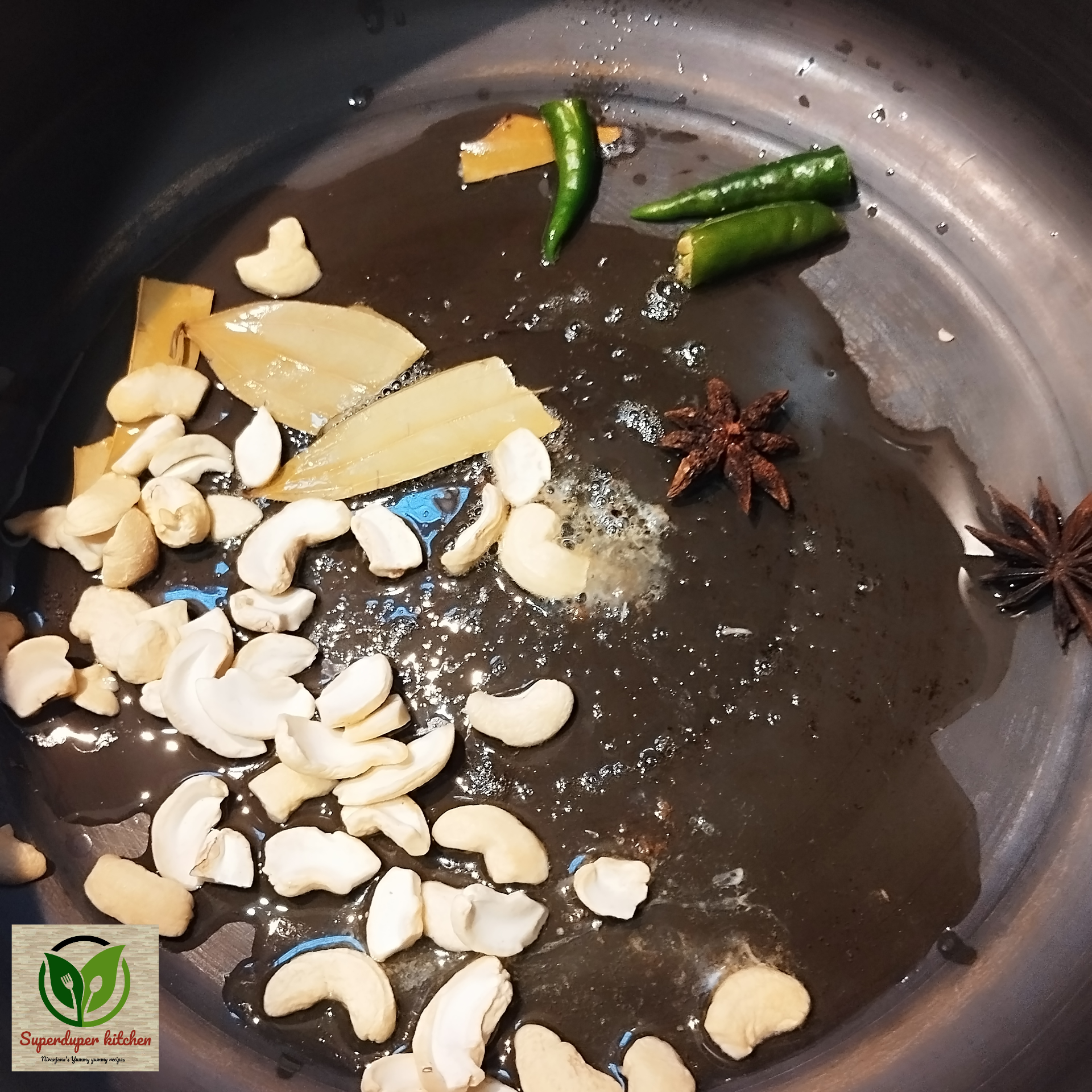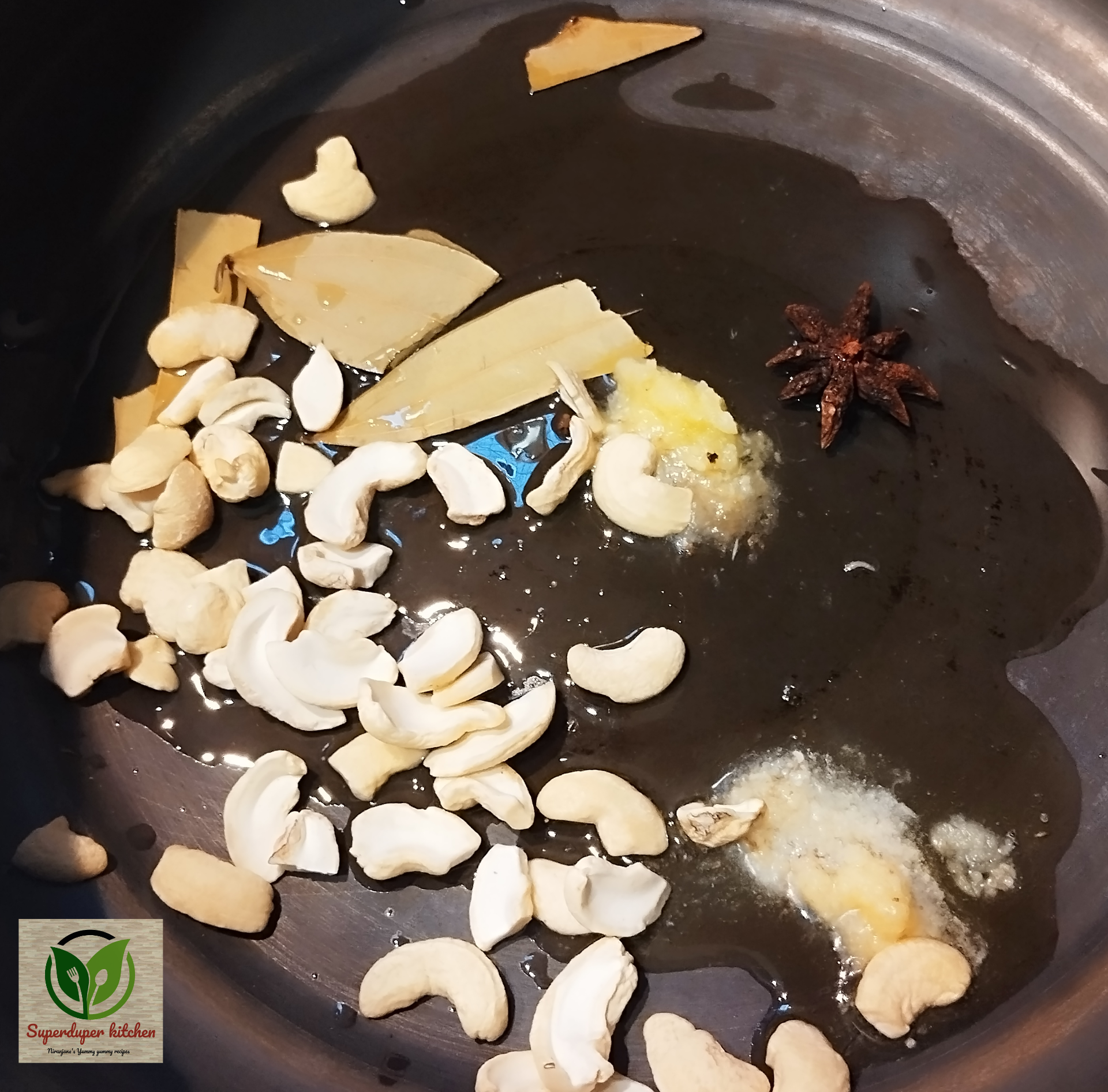 - In a pressure cooker, heat coconut oil. Add bay leaf, star anise, clove, and sauté until you get a fragrant aroma.