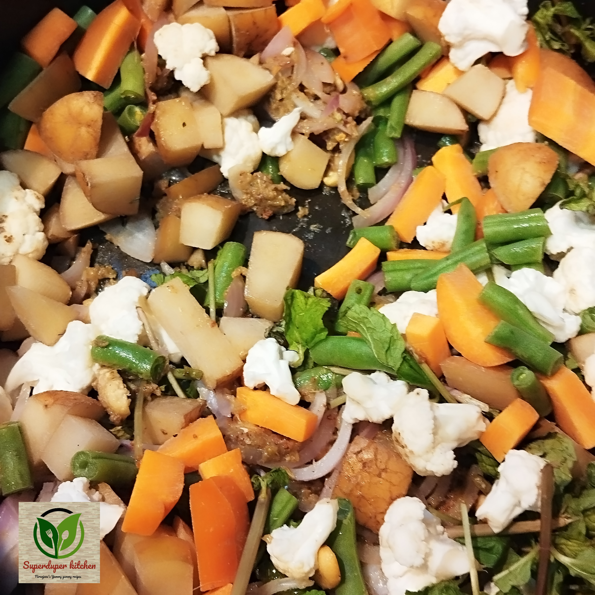 - Stir in the chopped vegetables and mint leaves, mixing well.