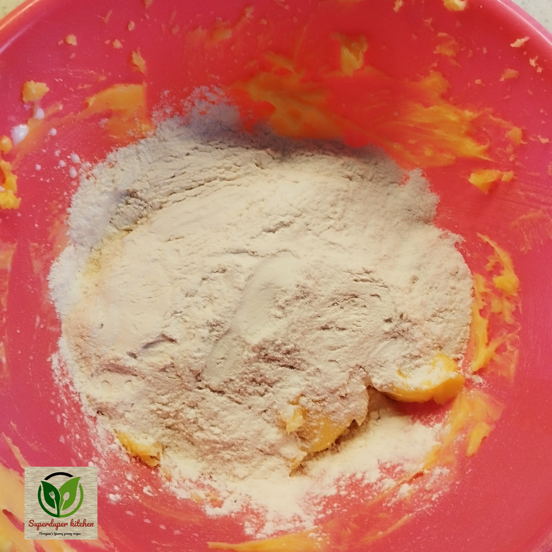 - Incorporate the Dry Ingredients: Sift together the flour, baking powder. Gradually add this to the wet mixture, folding gently to form a soft dough. If you’re using flavourings like lemon zest or vanilla, add them at this stage. I didnt add any flavouring in my biscuit dough.