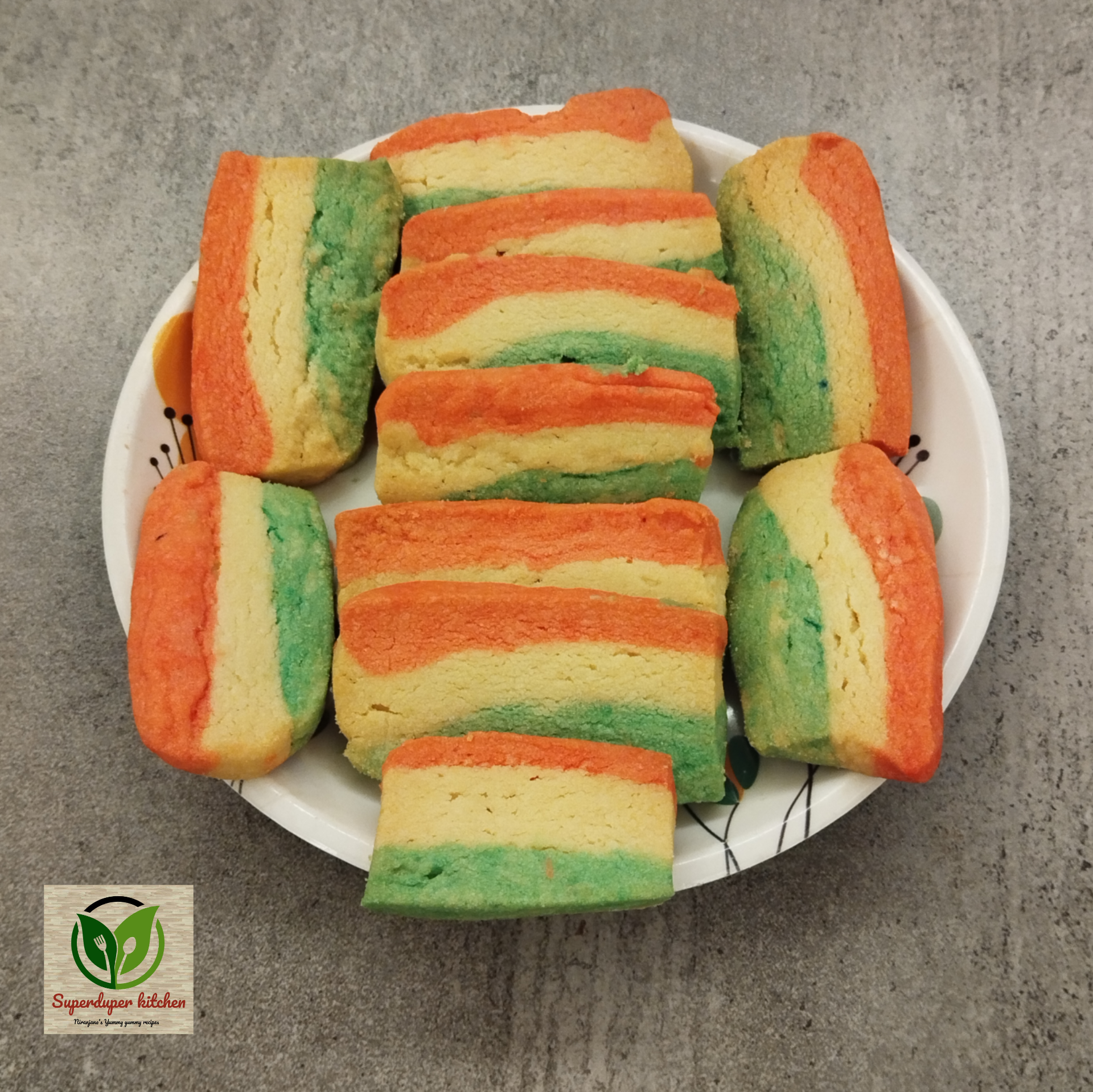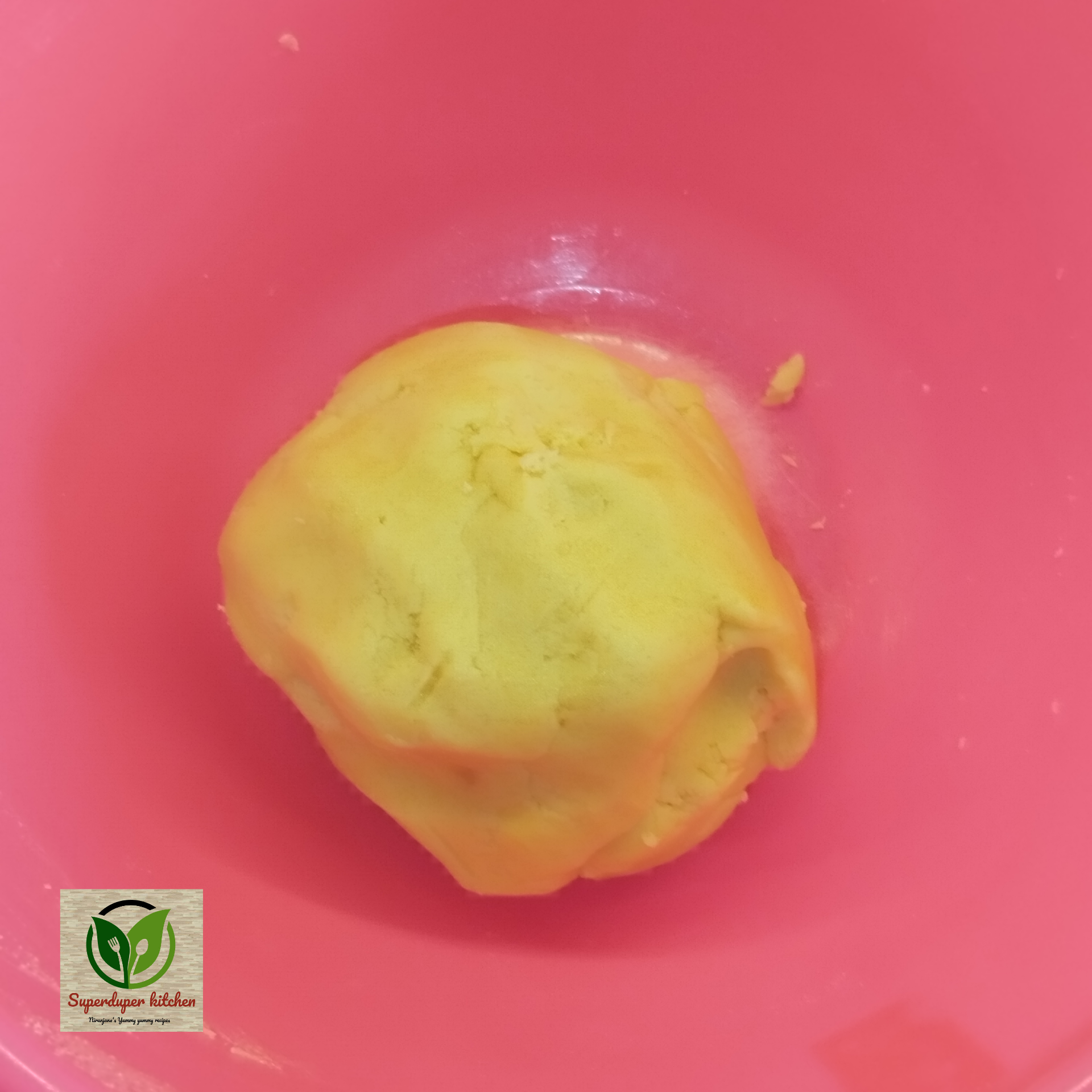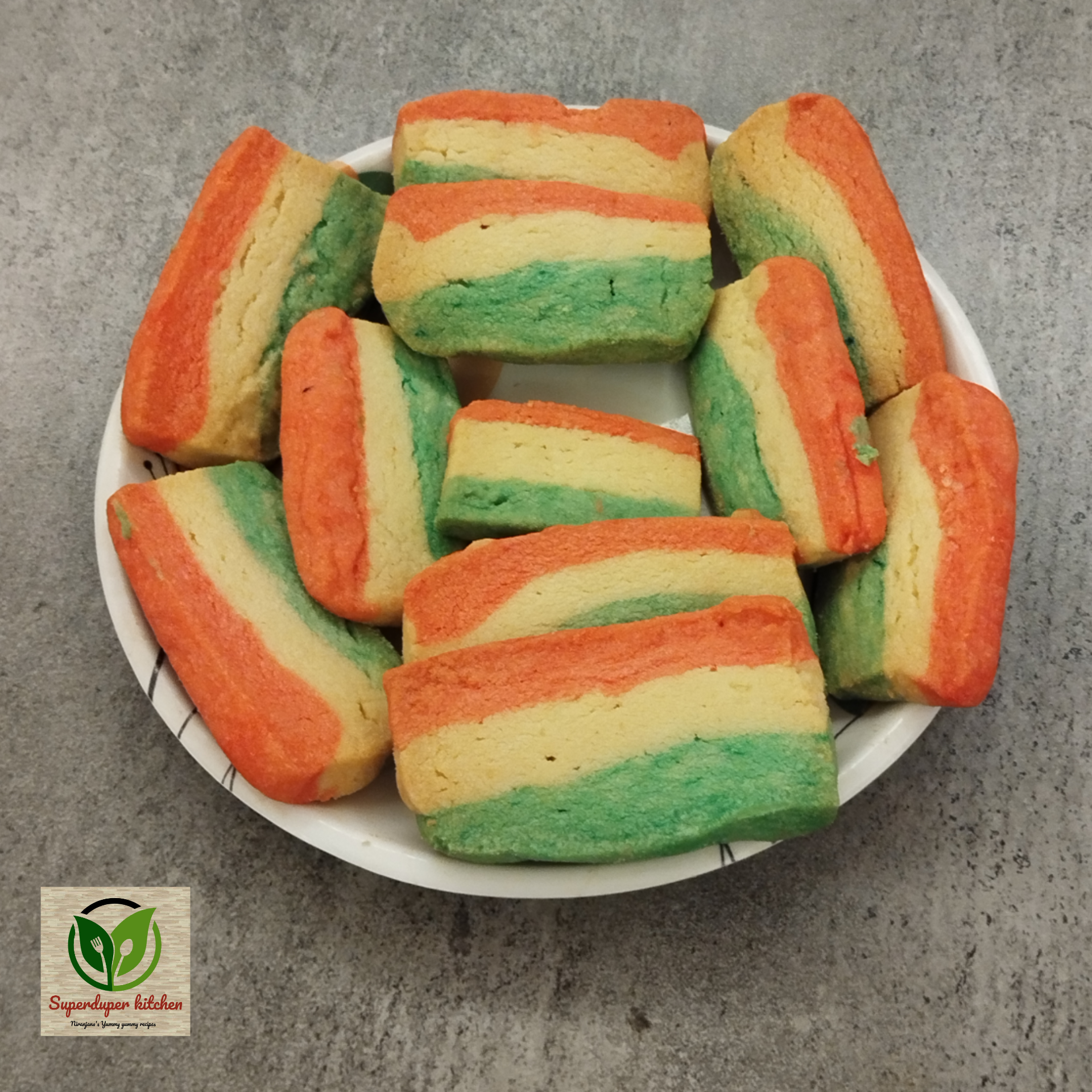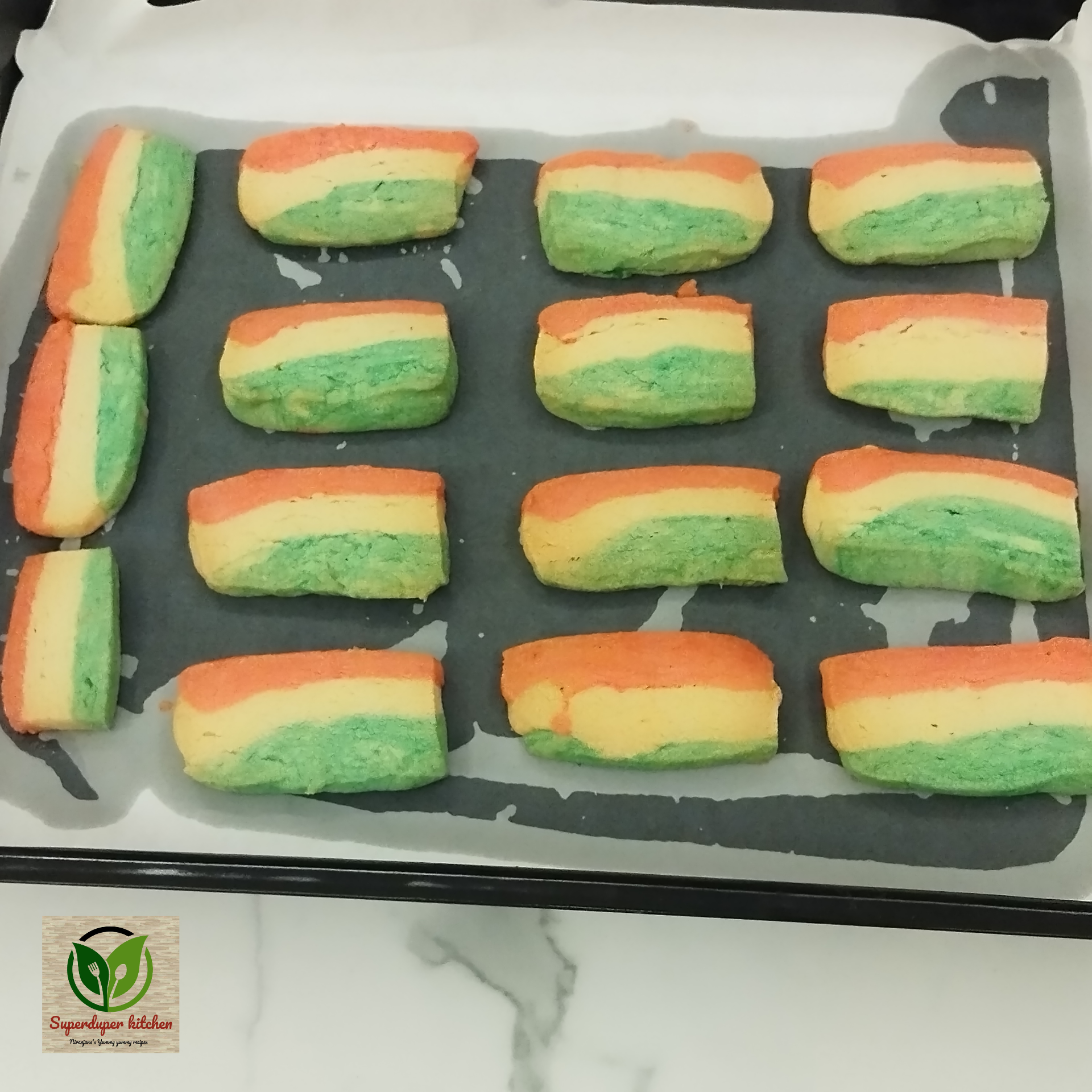 - Stacking: On a sheet of butter paper, first lay down the orange dough, then place the plain dough on top, and finally layer the green dough on top of that.