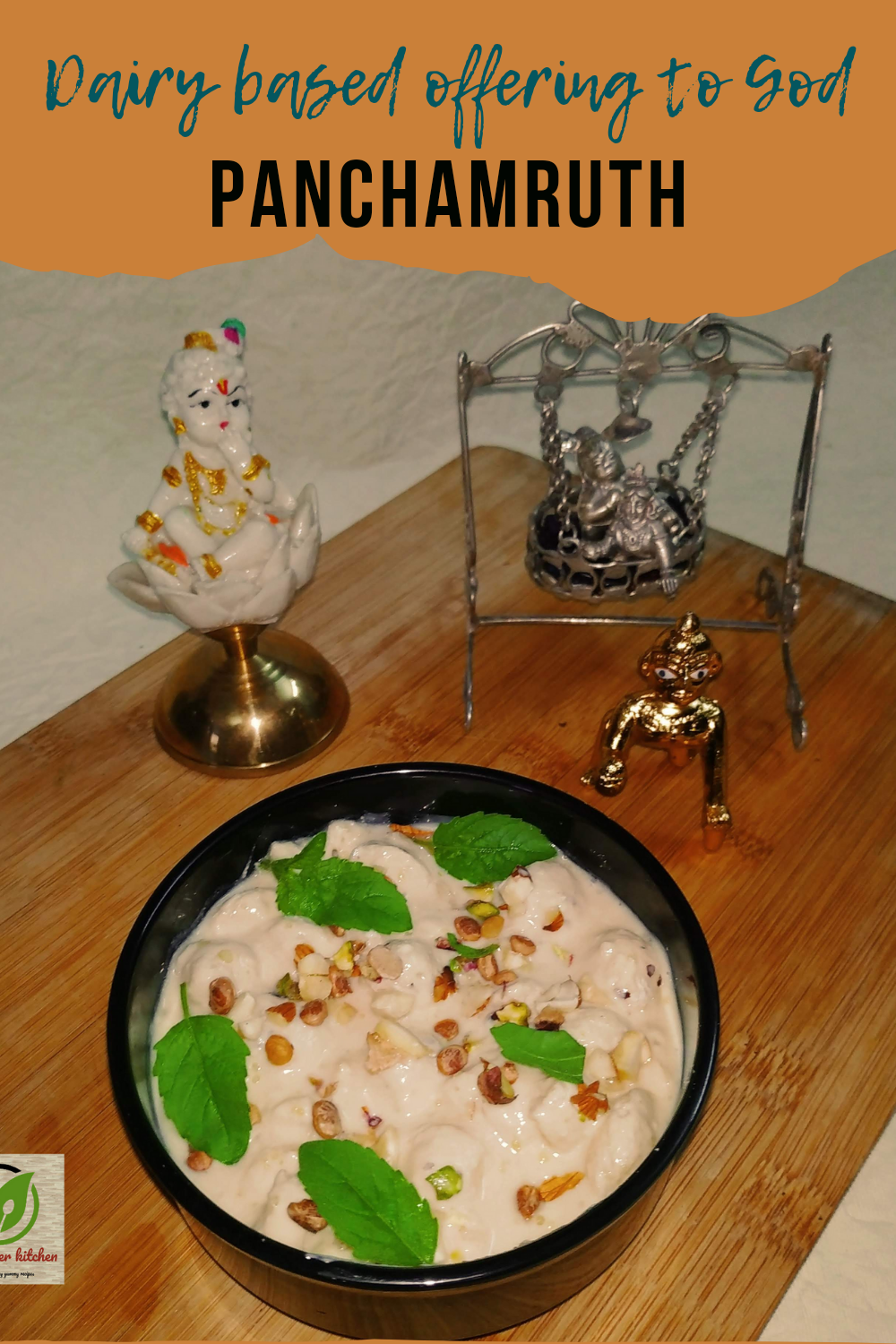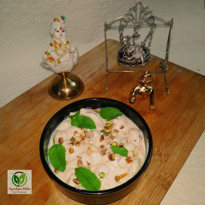 - Garnish: Finally, garnish the Panchamrut with mixed nuts and a few Tulsi leaves.