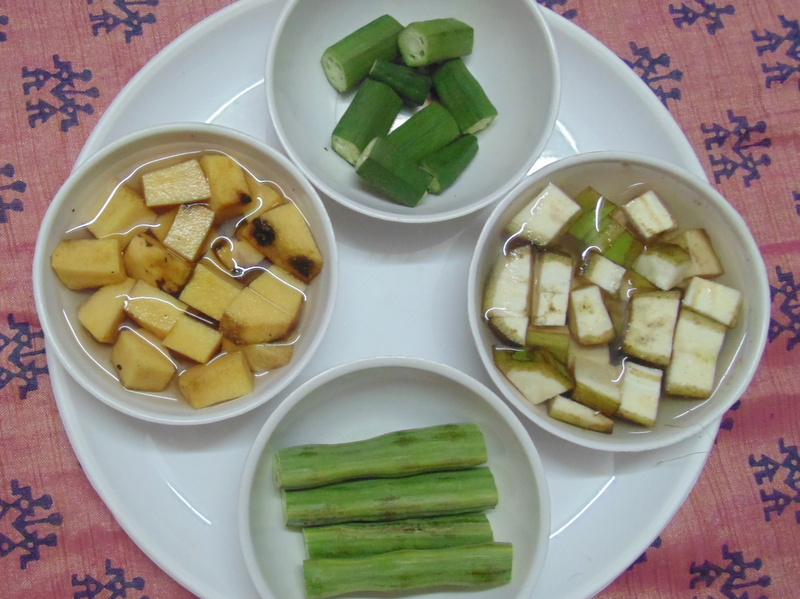 - Wash and peel the vegetables like pumpkin, ash gourd, or yam. Cut them into bite-sized cubes.
