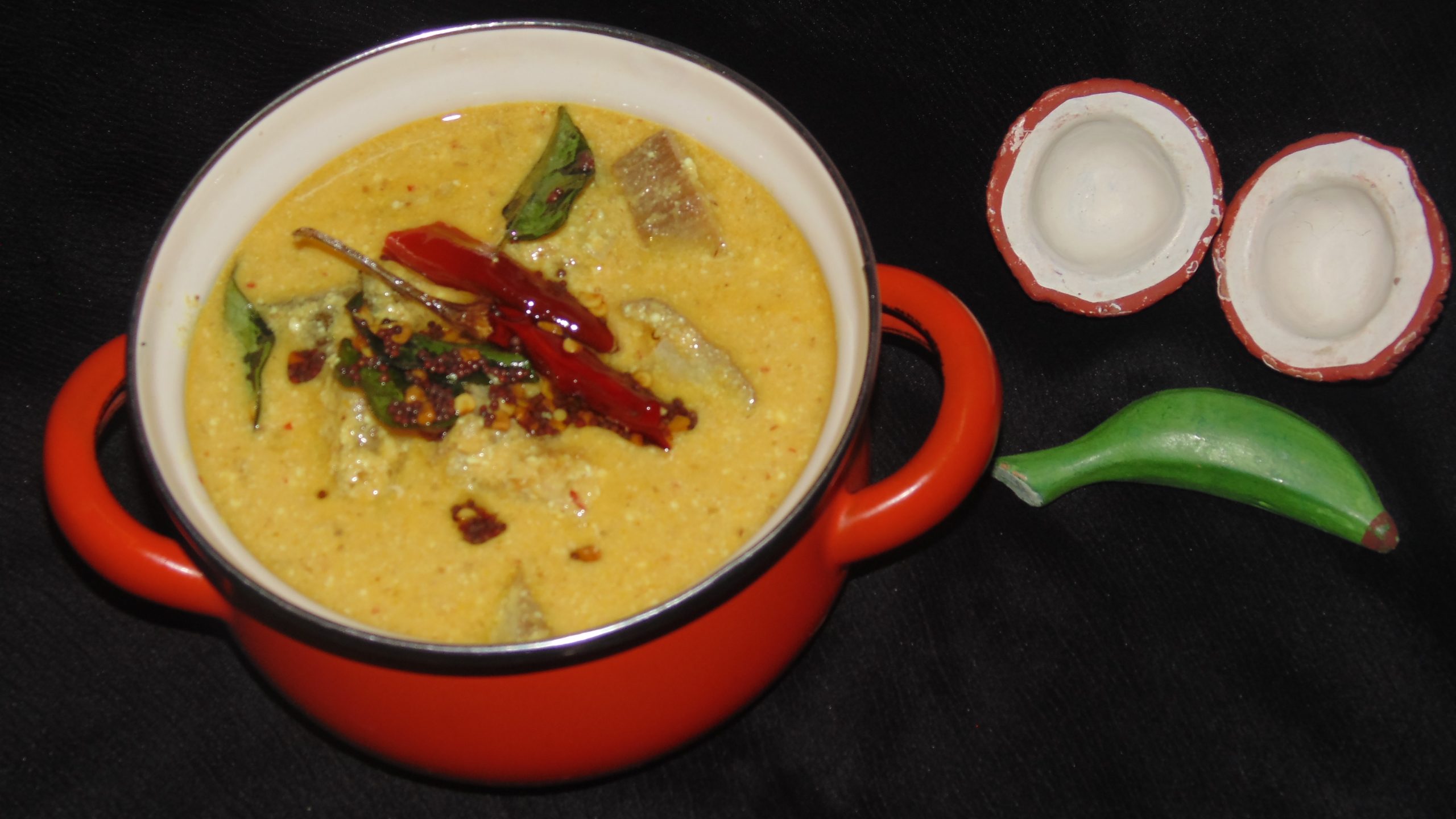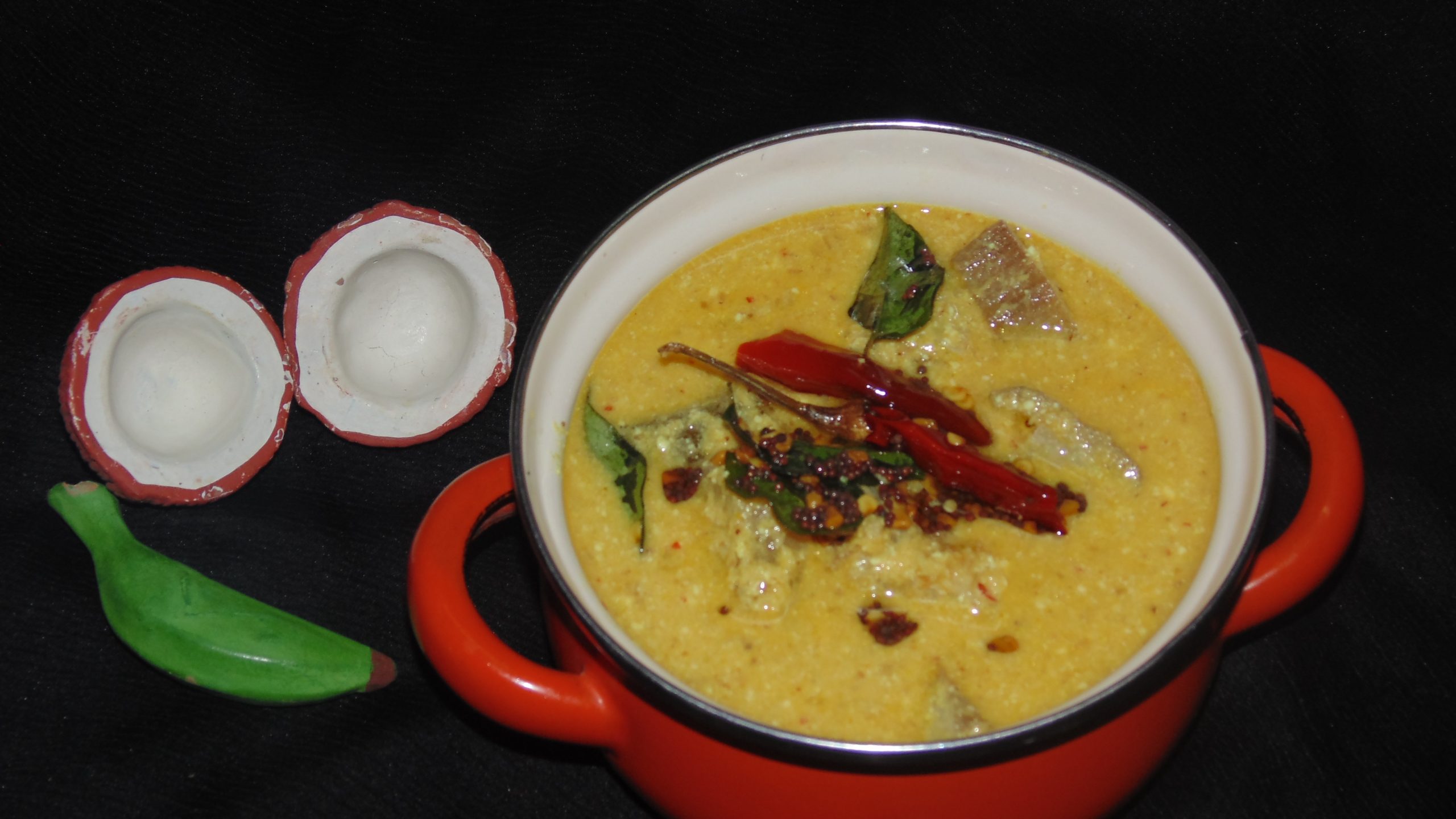 - Vegetables: Pumpkin, yam, ash gourd, or raw banana are typically used. The vegetables are soft-cooked, allowing them to absorb the tangy flavors.