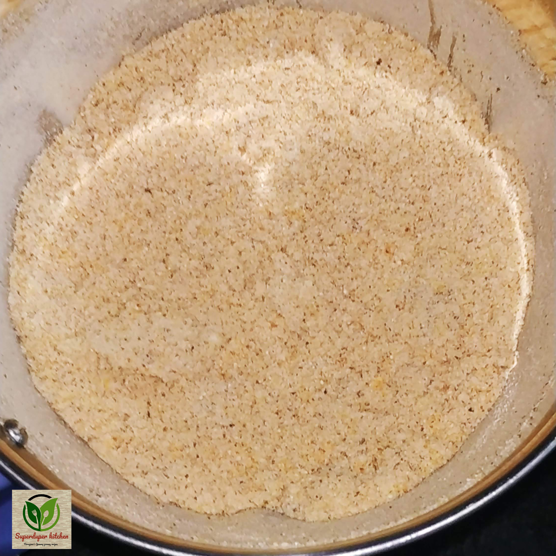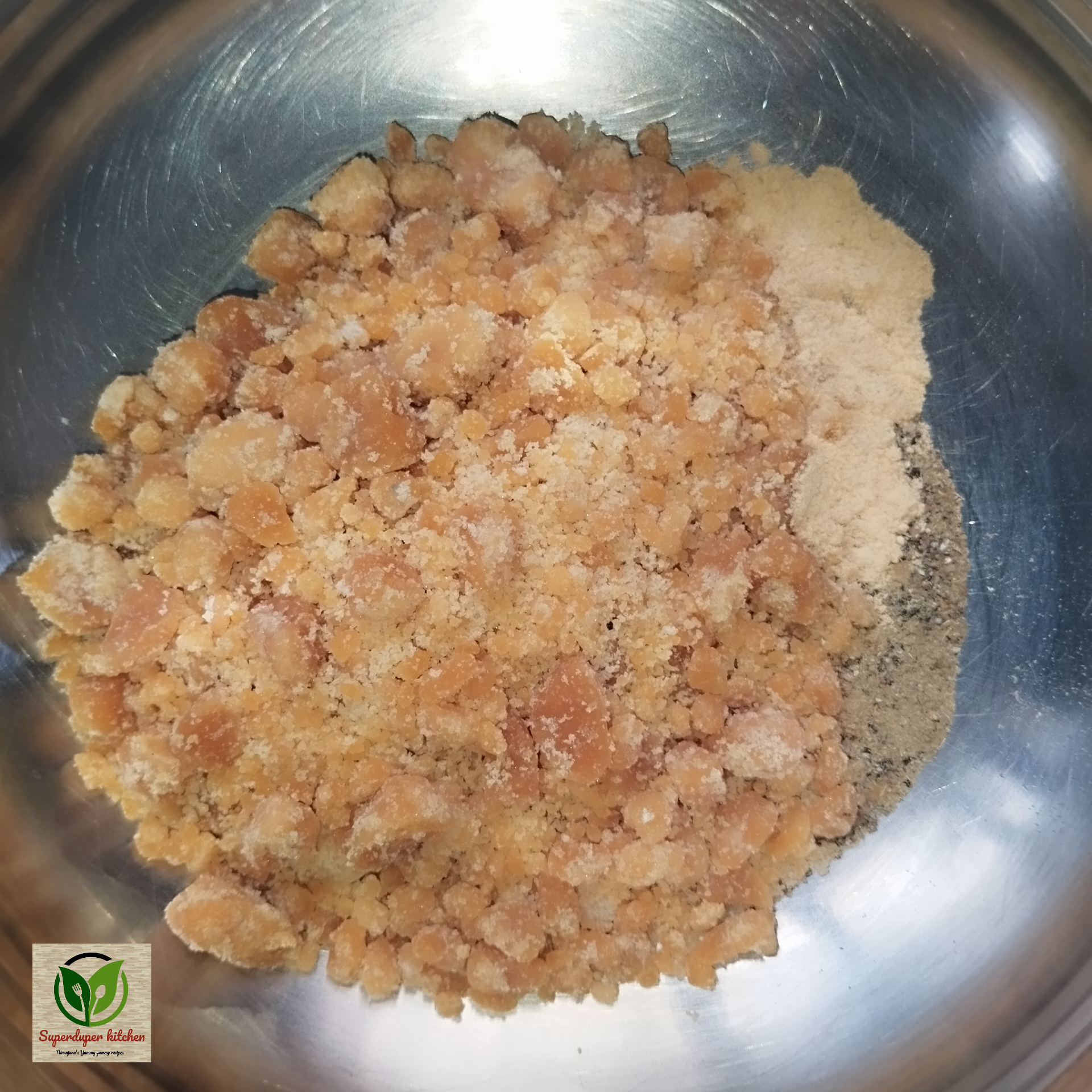 - In another pan, combine jaggery and water to prepare the syrup.