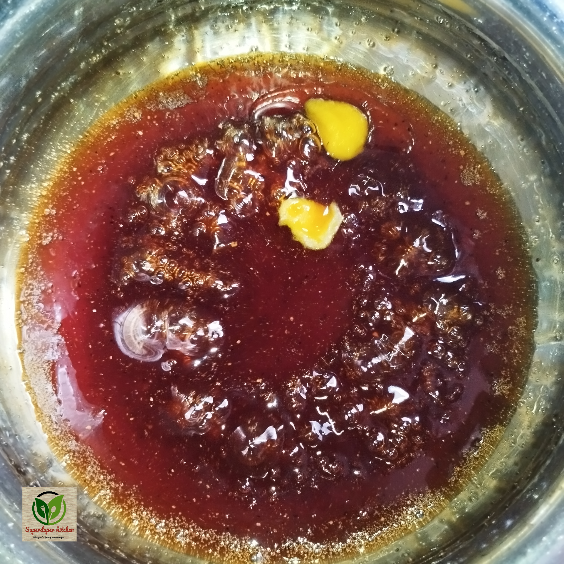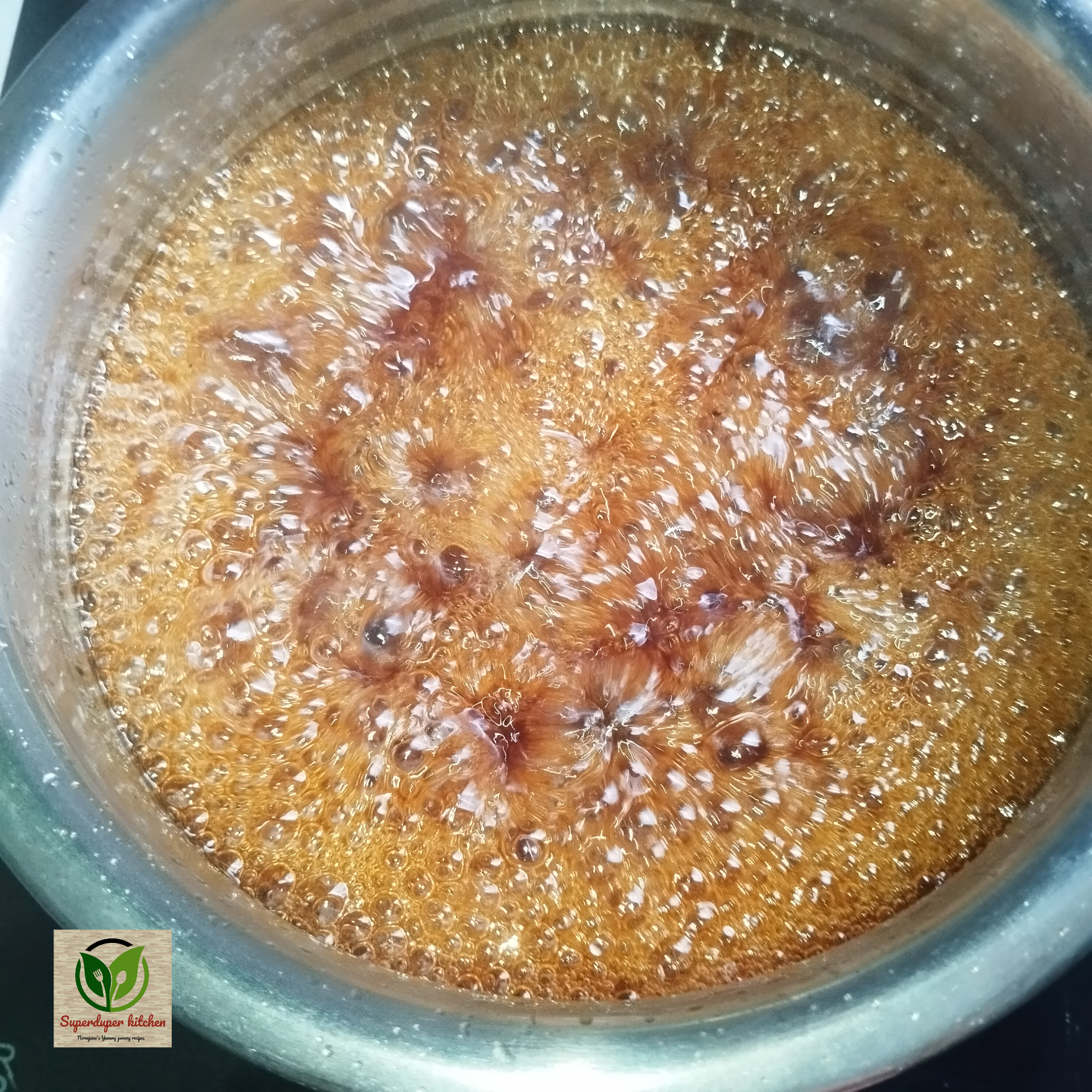 - Once the jaggery syrup is ready, allow it to cool down slightly.