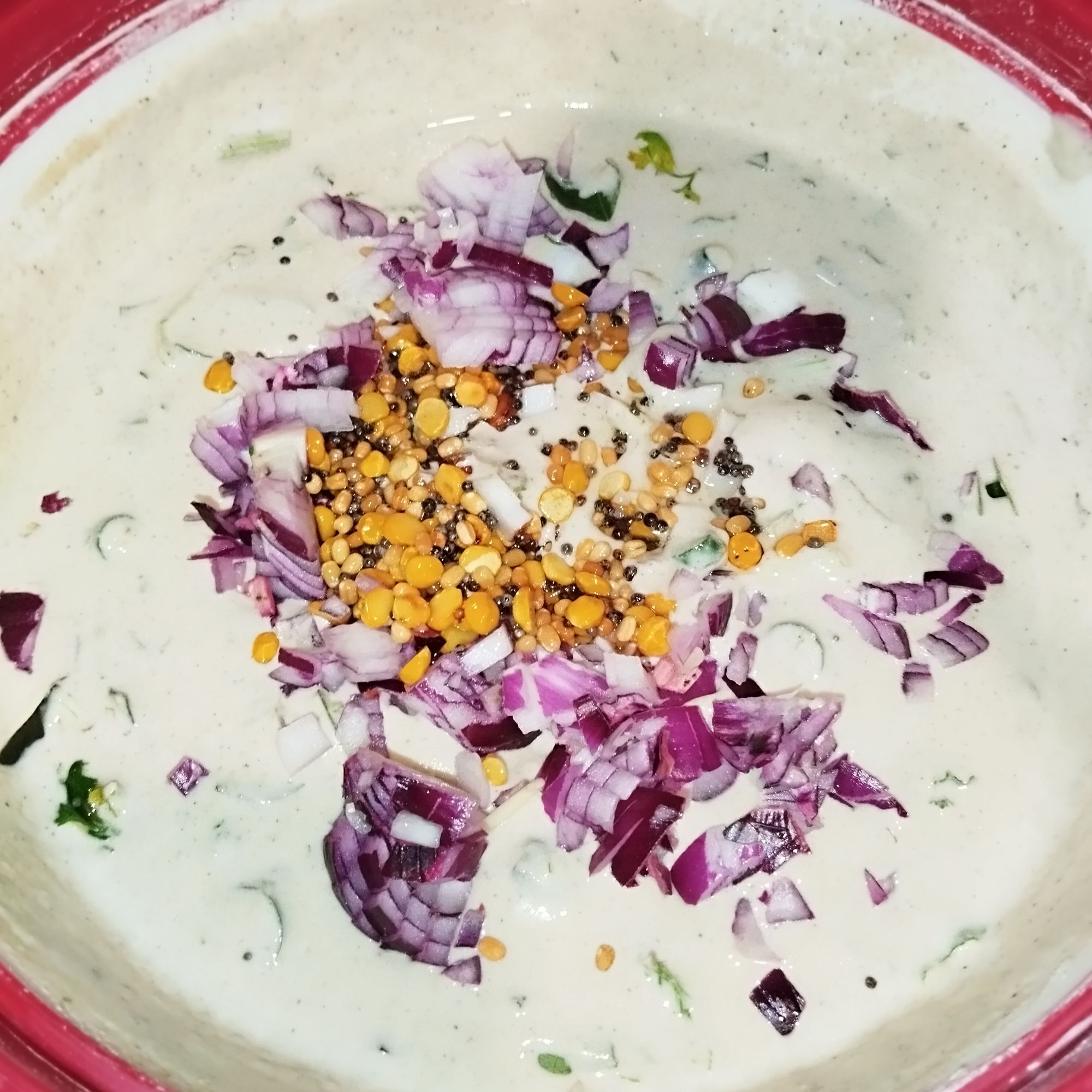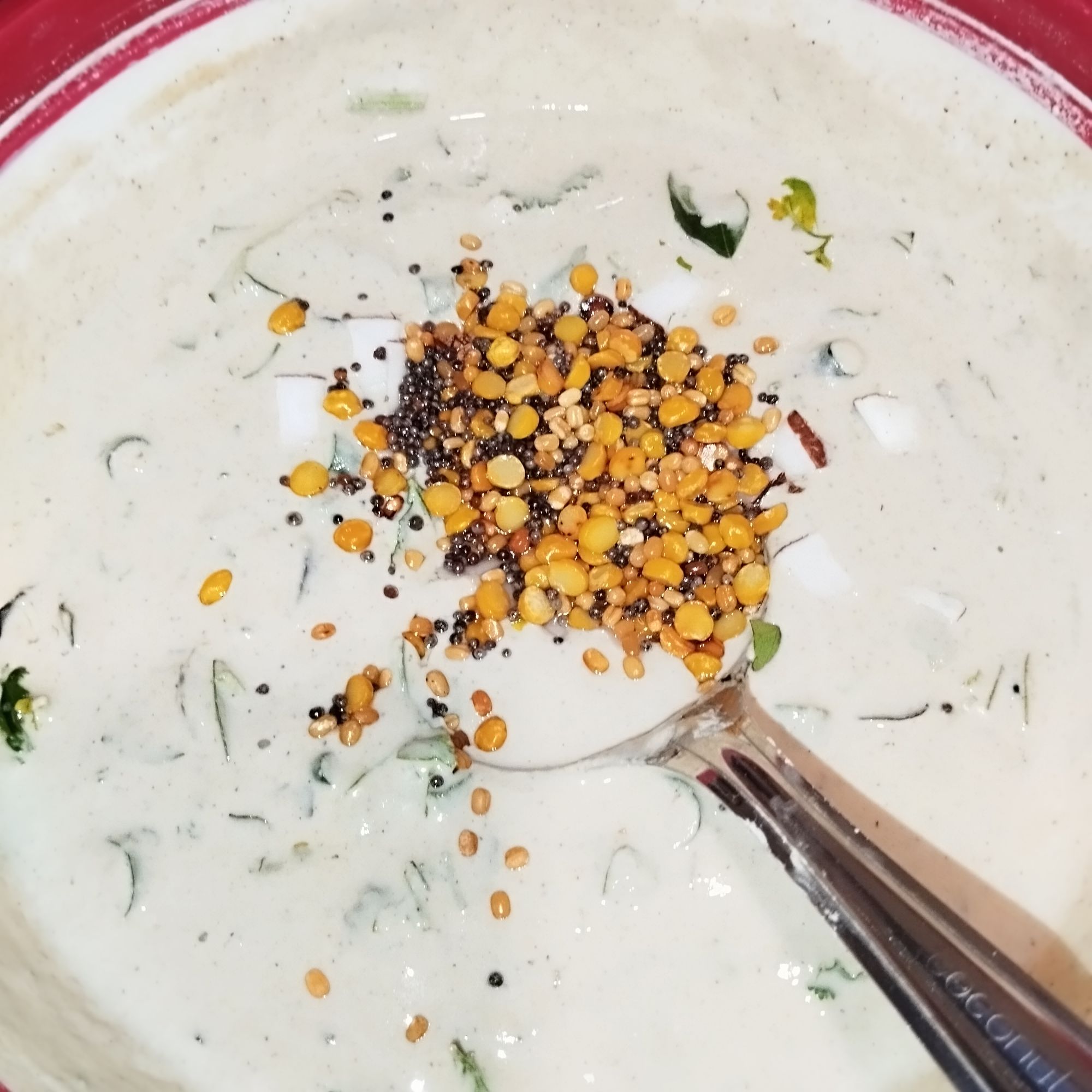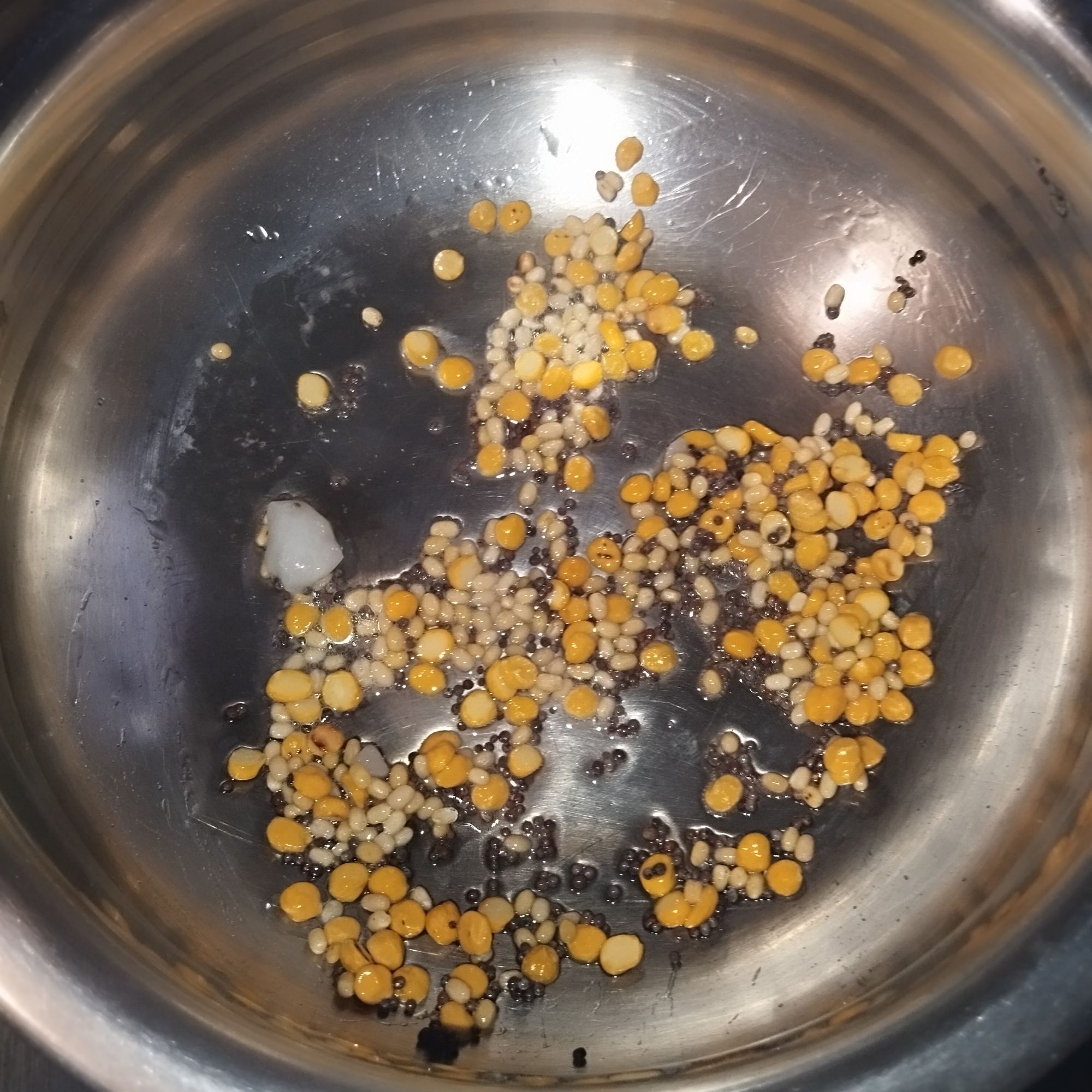 - Heat a small tadka pan with oil. Splutter mustard seeds.