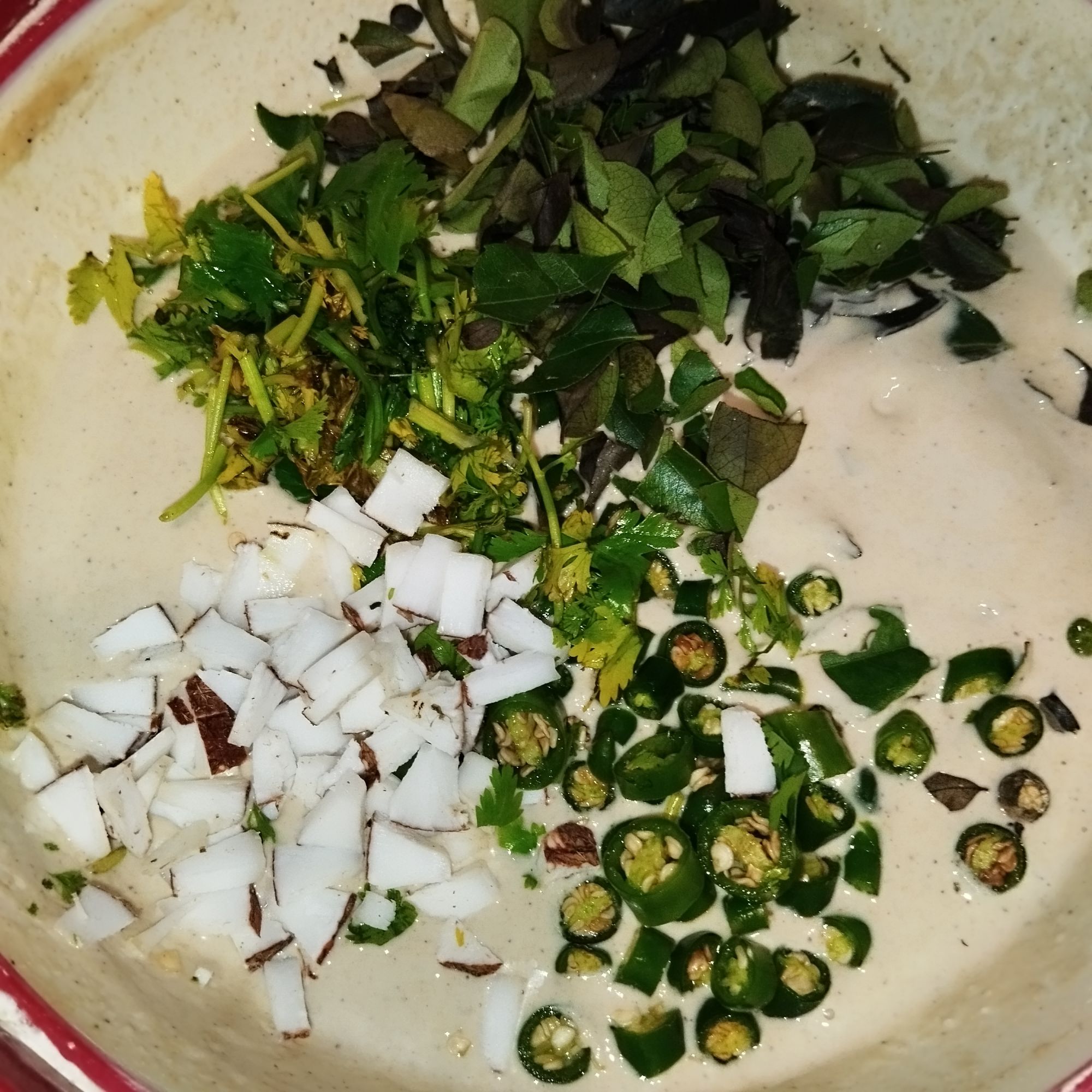 - Add chopped onions, curry leaves, green chilies, and grated vegetables (if using).